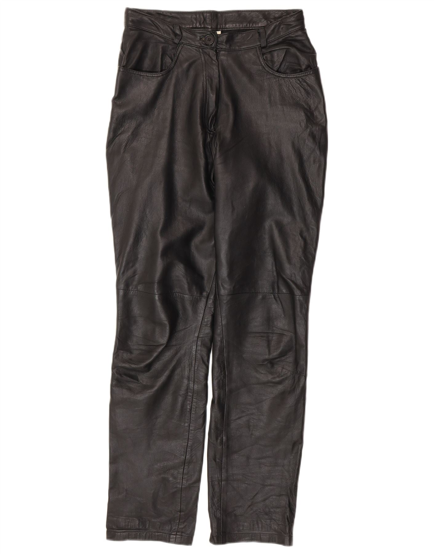 Pantaloni in pelle affusolati da donna VINTAGE UK 10 piccoli W28 L30 in pelle nera