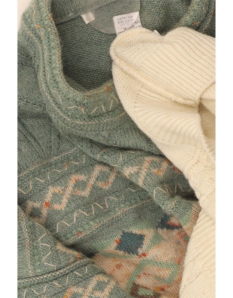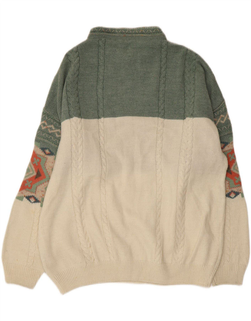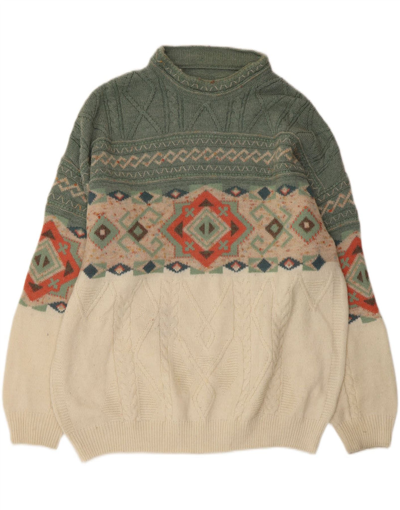 Maglione maglione collo alto da donna VINTAGE UK 18 XL lana Fair Isle verde