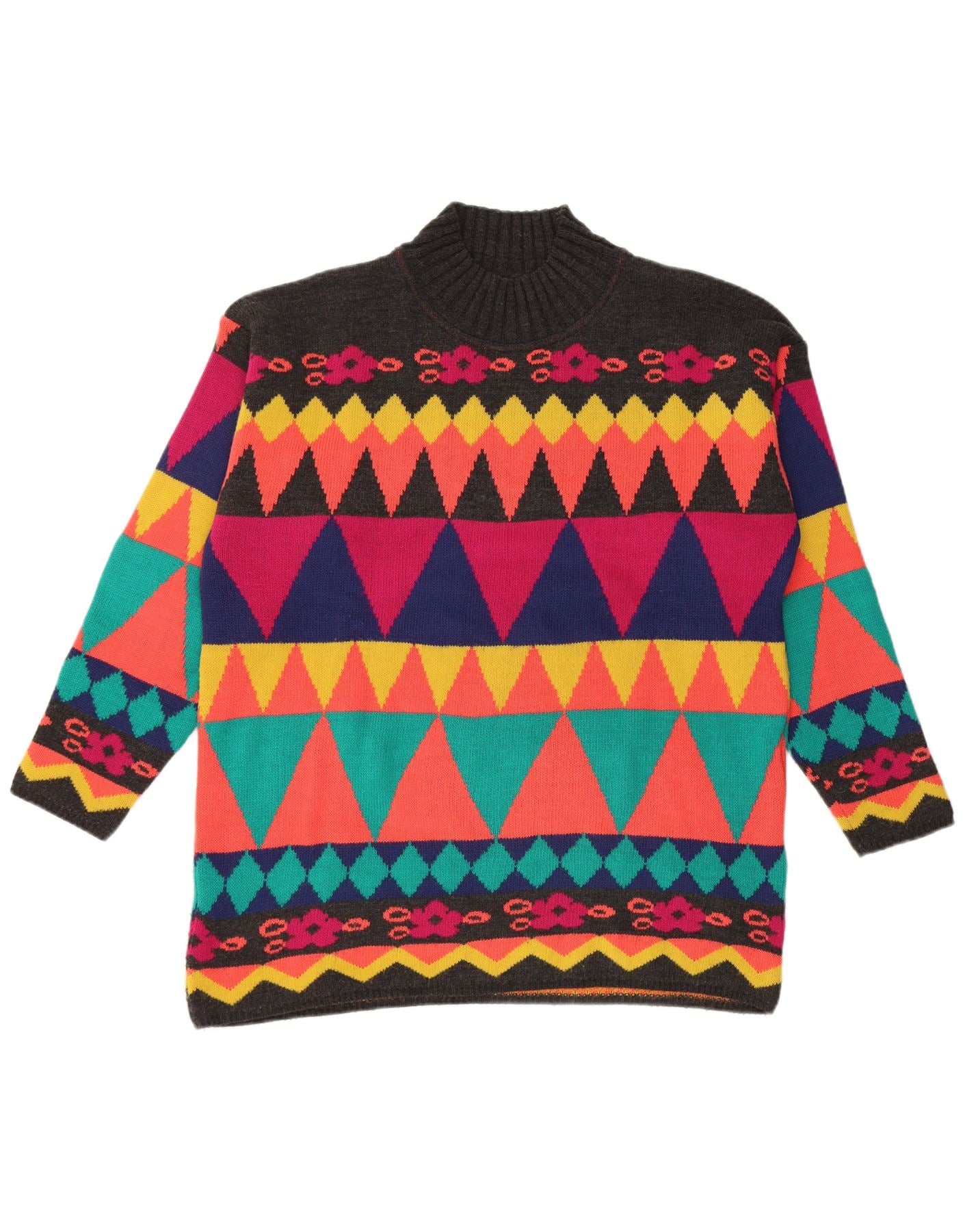 Maglione maglione collo alto da donna VINTAGE UK 18 XL multicolore geometrico