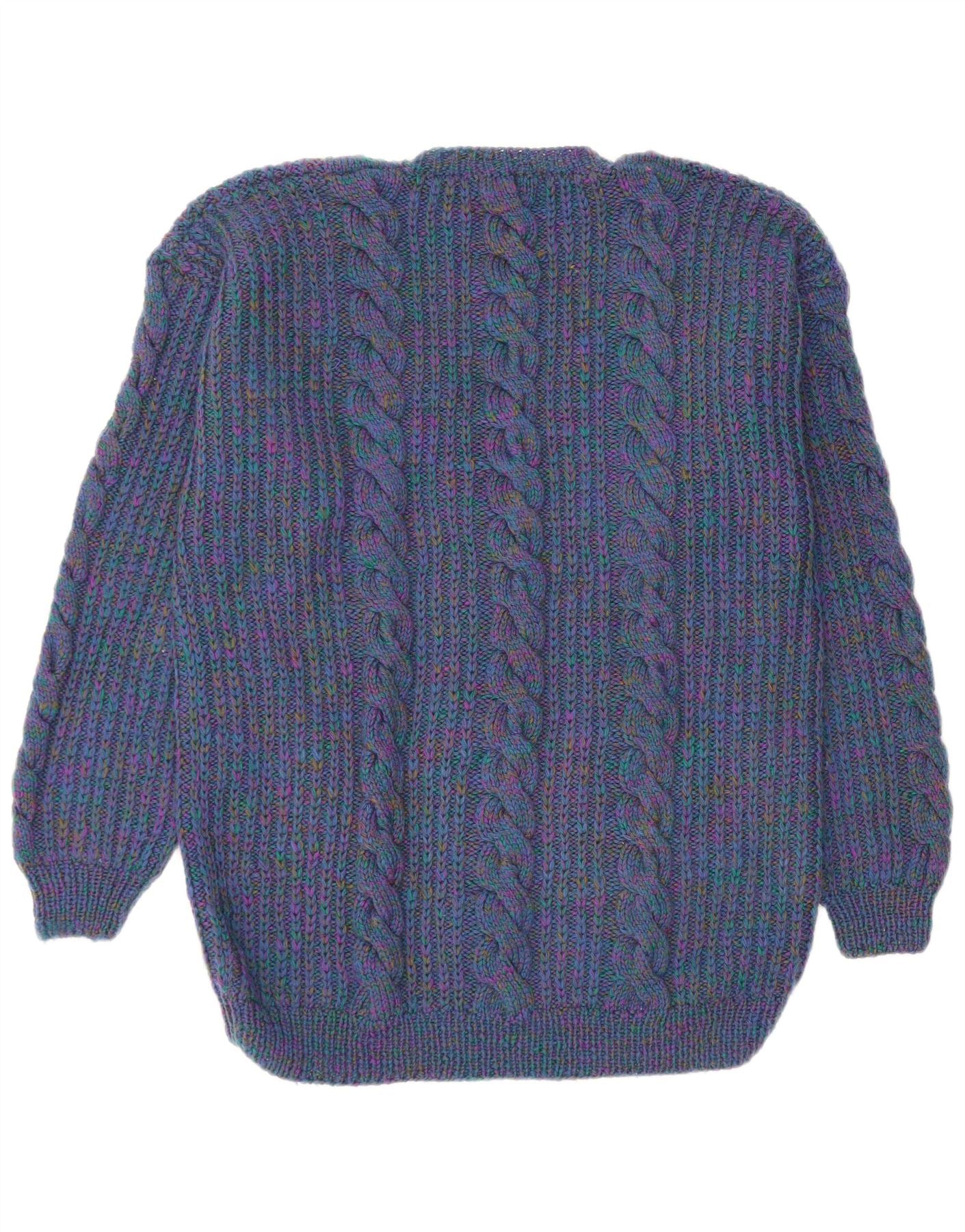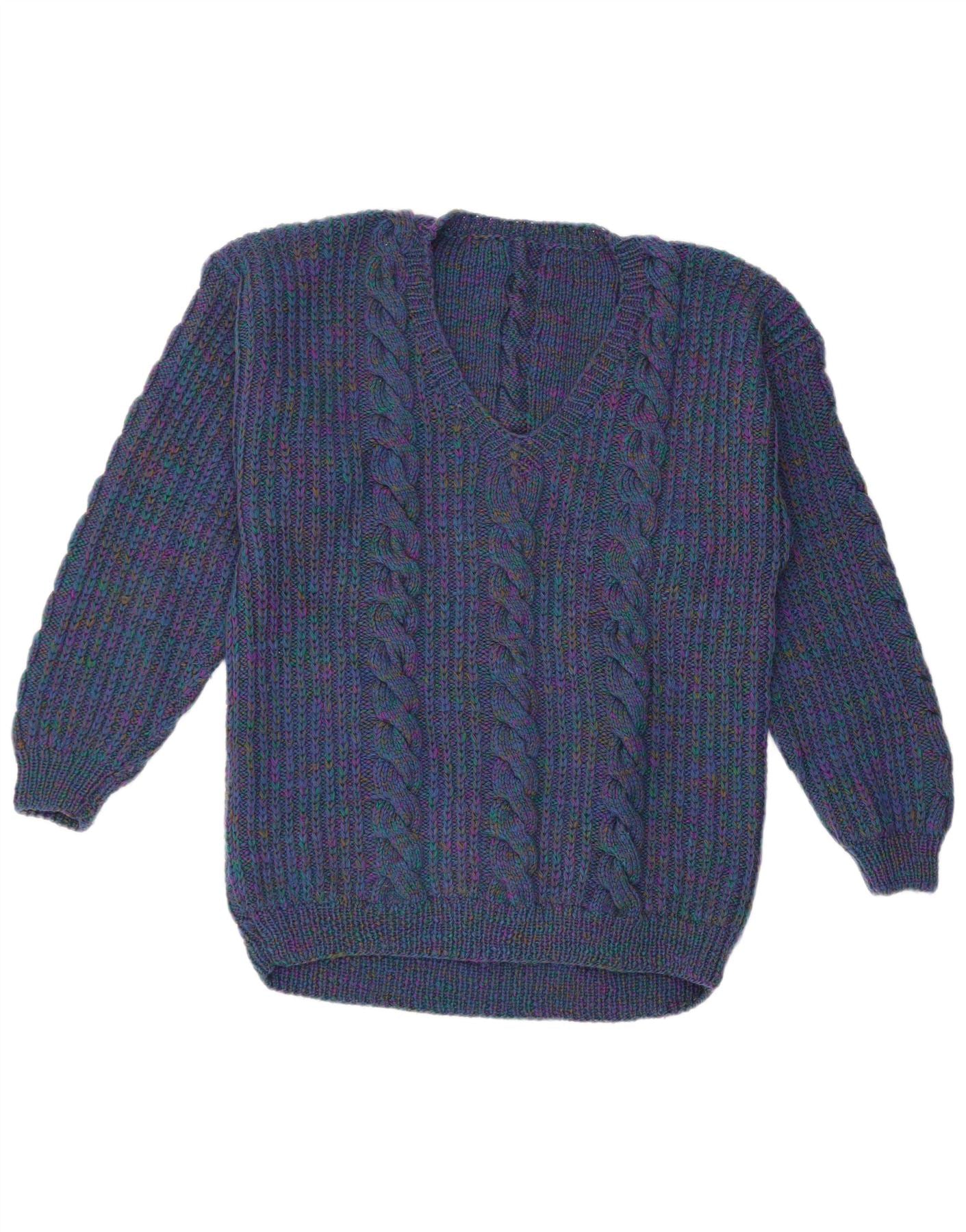 Maglione maglione con scollo a V da donna VINTAGE UK 14 grande blu navy screziato