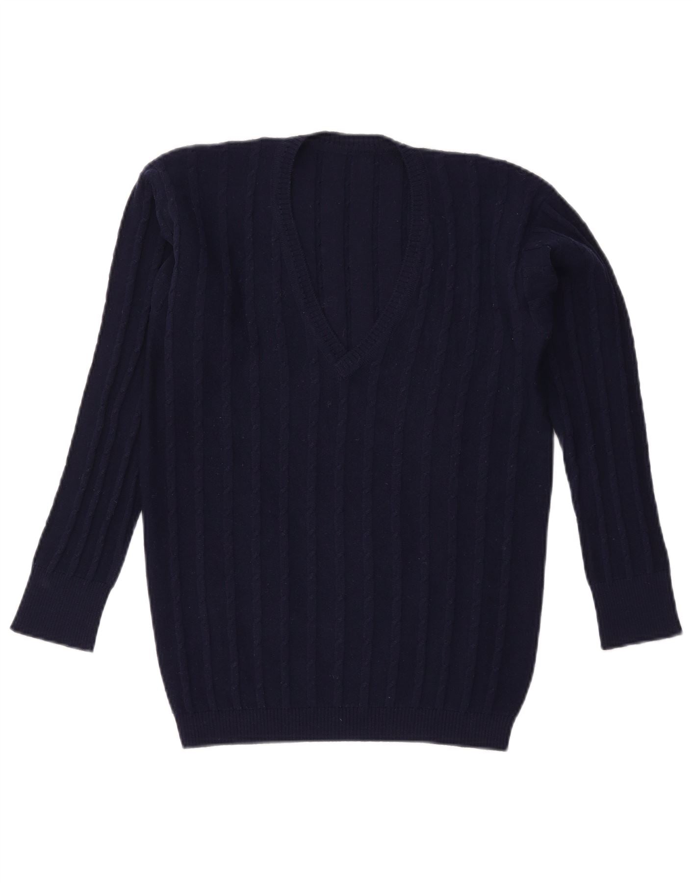 Maglione maglione con scollo a V da donna VINTAGE UK 16 grande blu navy