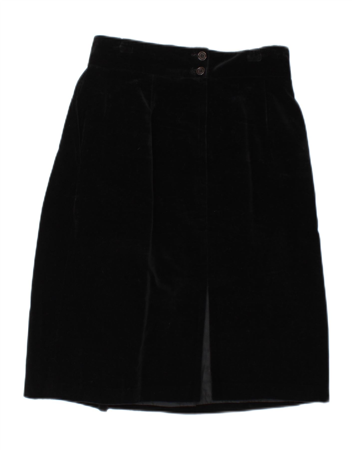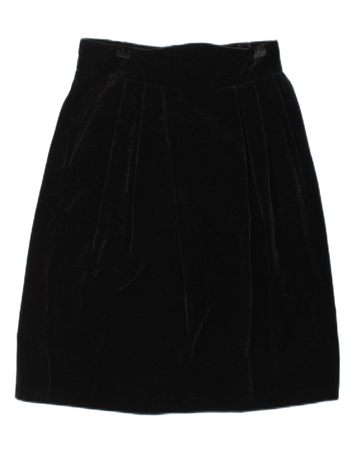 VINTAGE Womens Velvet High Waist A-Line Skirt IT 42 Medium W24 Black