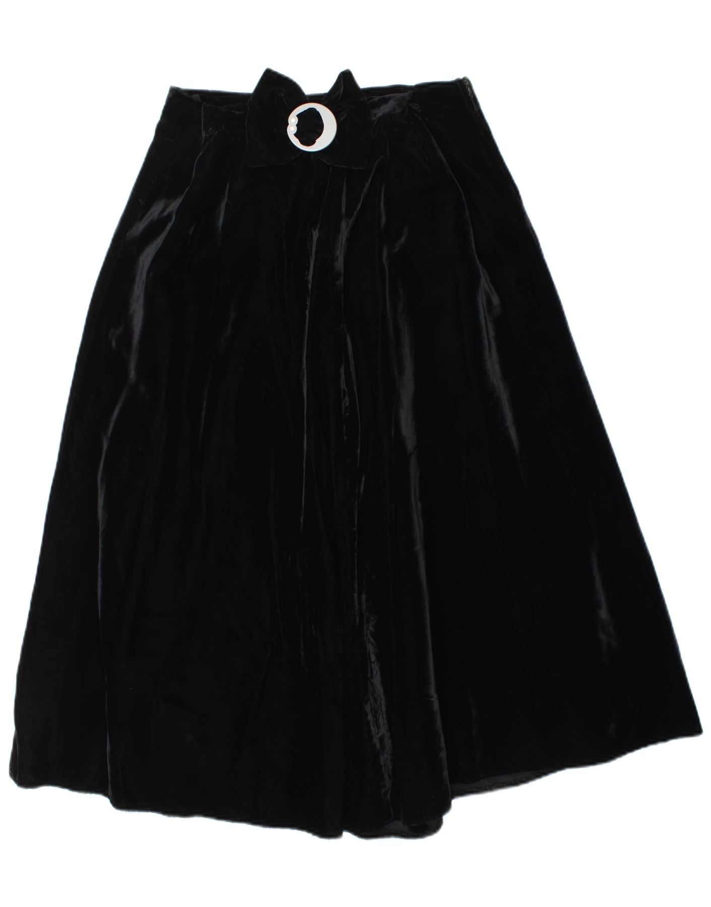 Gonna svasata a vita alta in velluto da donna VINTAGE IT 44 media W28 nera