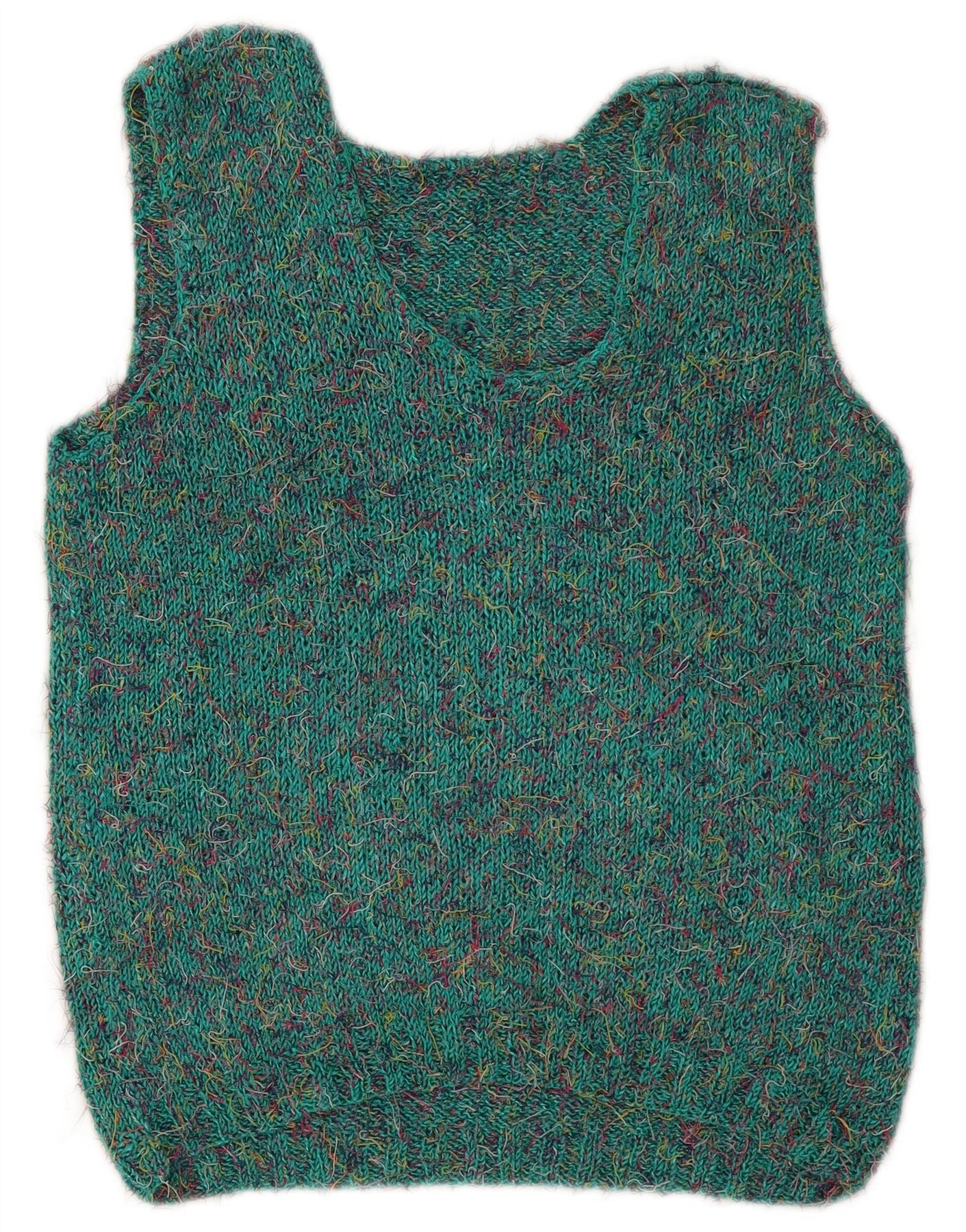 - Descrizione dell'IA: Questo gilet da donna vintage è realizzato in un tessuto a maglia comodo e leggero. Presenta una vibrante tonalità verde con un sottile motivo screziato. Il design senza maniche e il girocollo offrono una silhouette classica e versatile. La sua vestibilità regolare assicura facilità di indossabilità e un fascino senza tempo. Questo capo di ispirazione retrò offre comfort e stile, perfetto per la stratificazione.