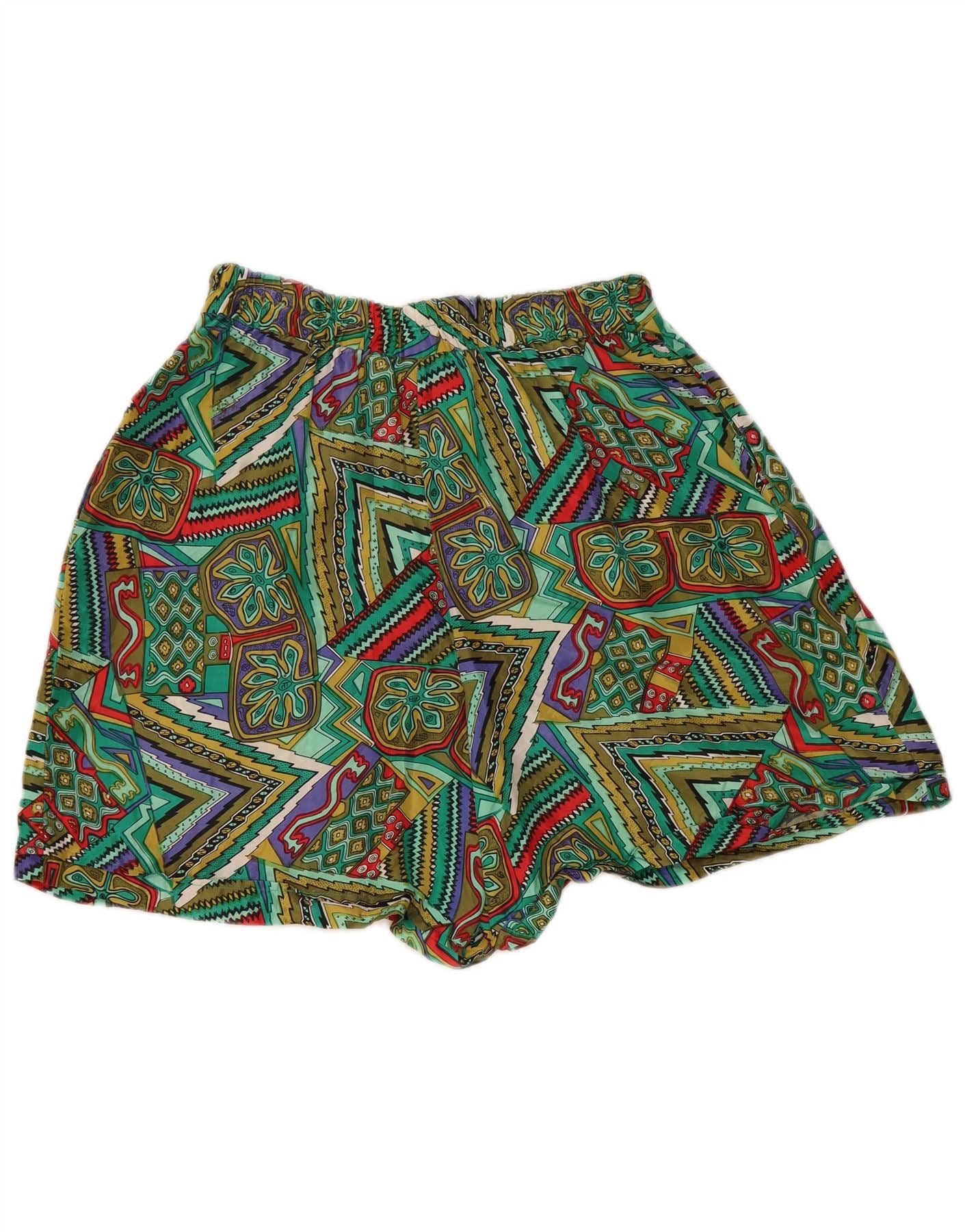 Pantaloncini casual vintage a gamba larga da donna medi W28 seta patchwork verde