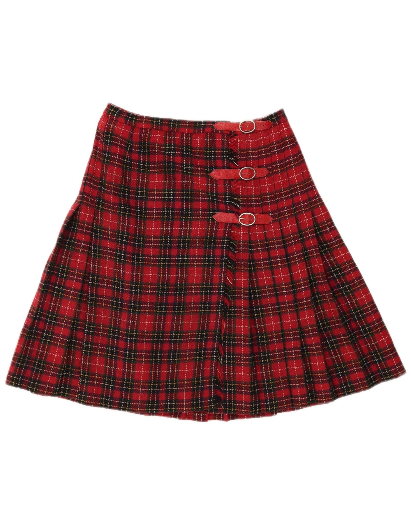 Gonna a pieghe a coltello avvolgente da donna VINTAGE W28 scozzese medio rosso