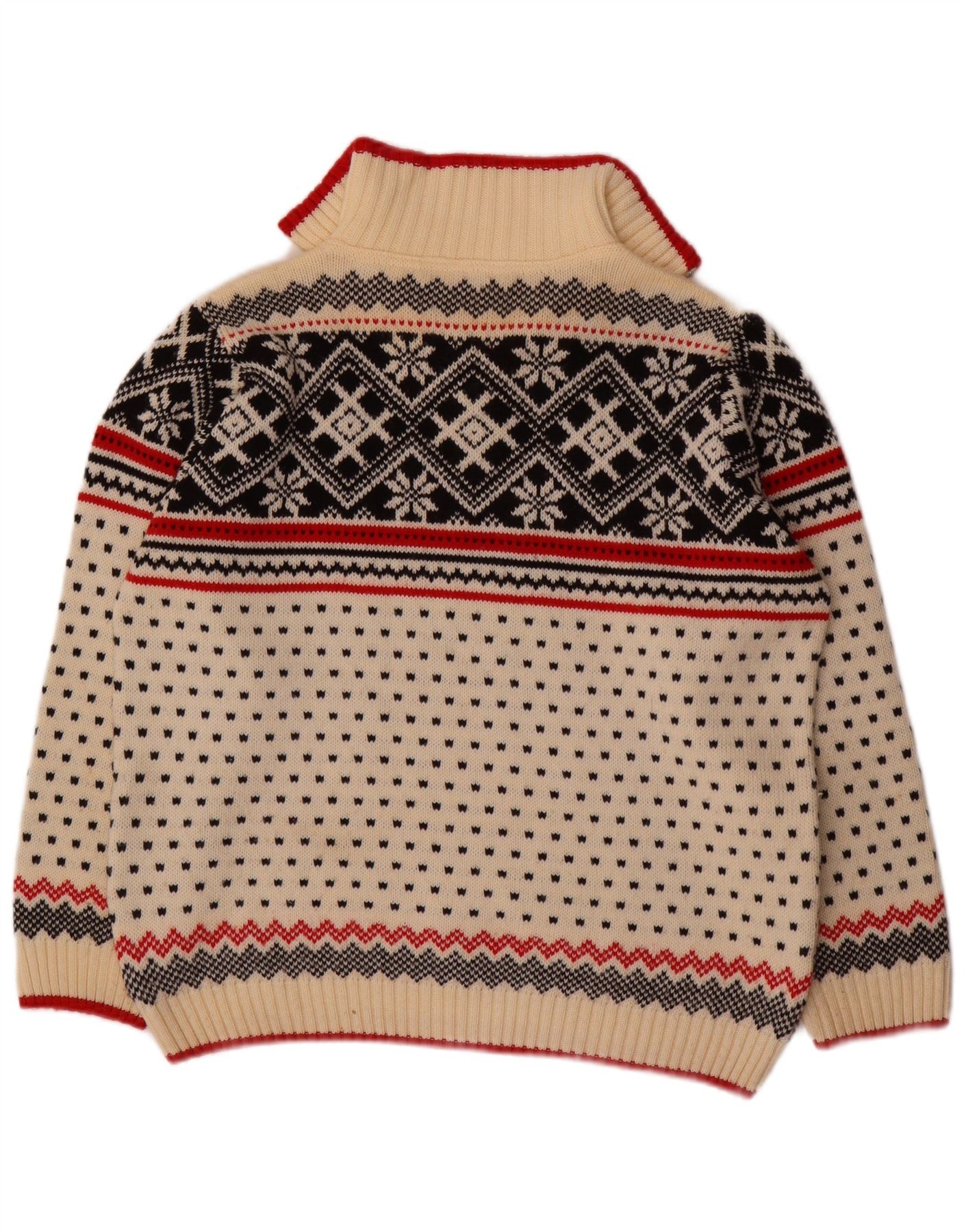 Maglione da donna VINTAGE con collo con zip UK 16 Large Off White Fair Isle