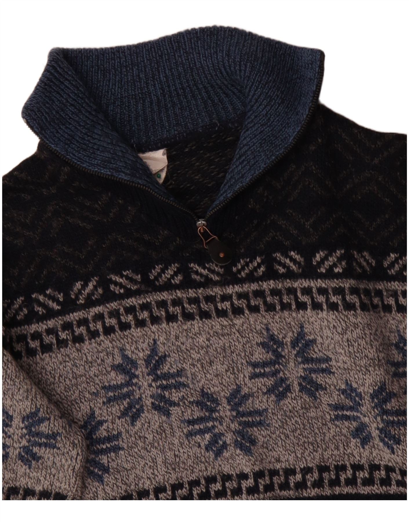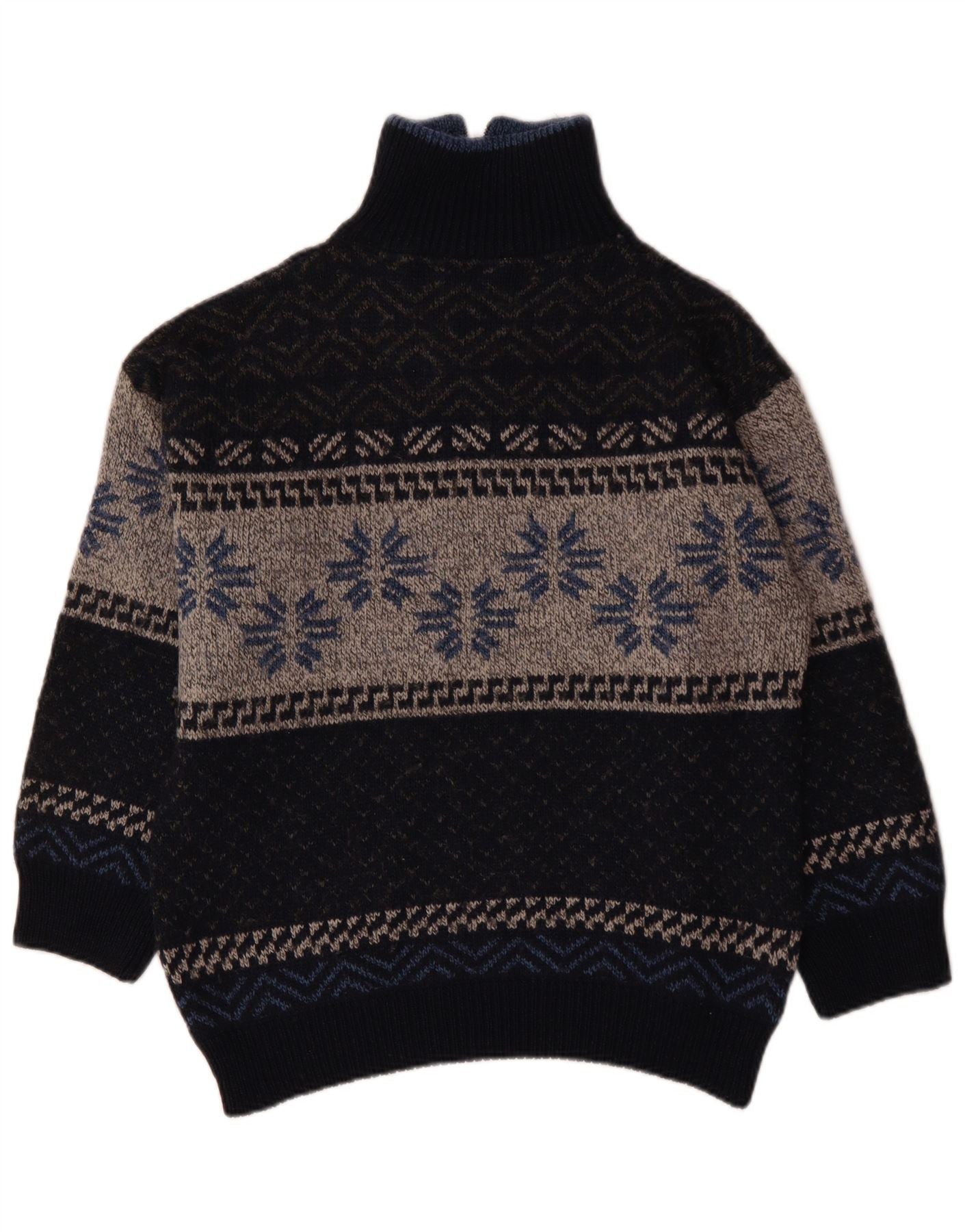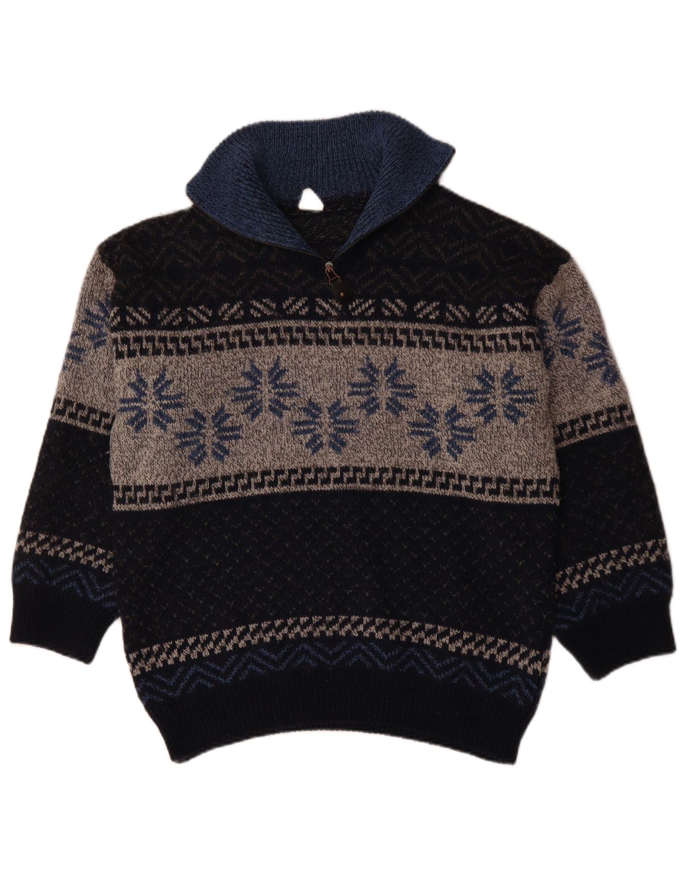 Maglione da donna VINTAGE con zip e collo UK 18 XL Blu navy Fair Isle