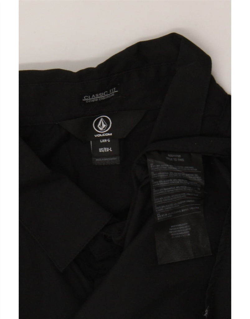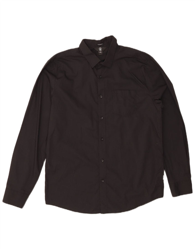 - AI Description: This Volcom mens formal shirt is crafted from a black cotton and polyester blend, offering a smooth finish. It features a classic collared neckline and a full button-up front for a refined look. Long sleeves taper to buttoned cuffs, while chest pockets add practical detail. The regular fit ensures comfortable wear, making it a versatile choice for smart occasions.