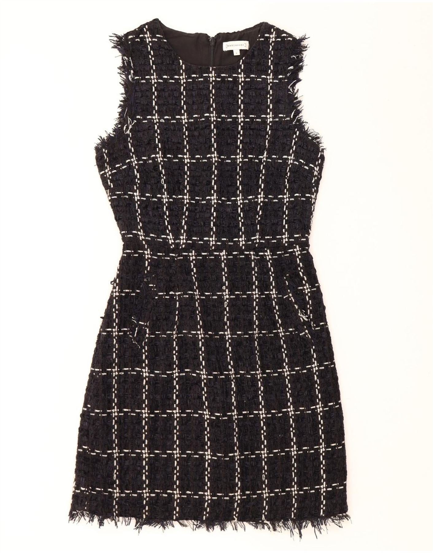 WAREHOUSE Abito tubino senza maniche da donna UK 8 piccoli quadri blu navy
