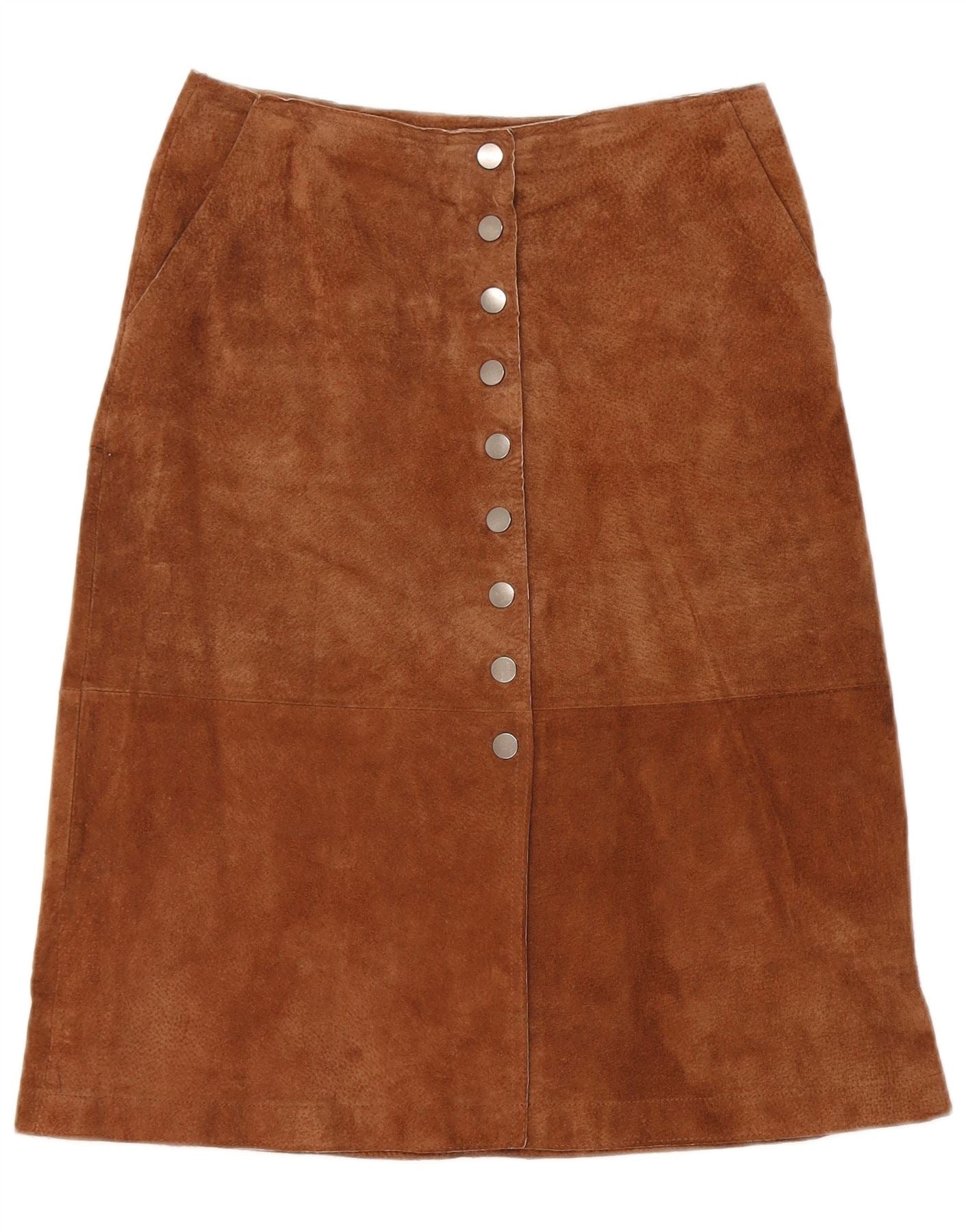 MAGAZZINO Gonna in pelle scamosciata da donna UK 8 piccola W26 in pelle marrone