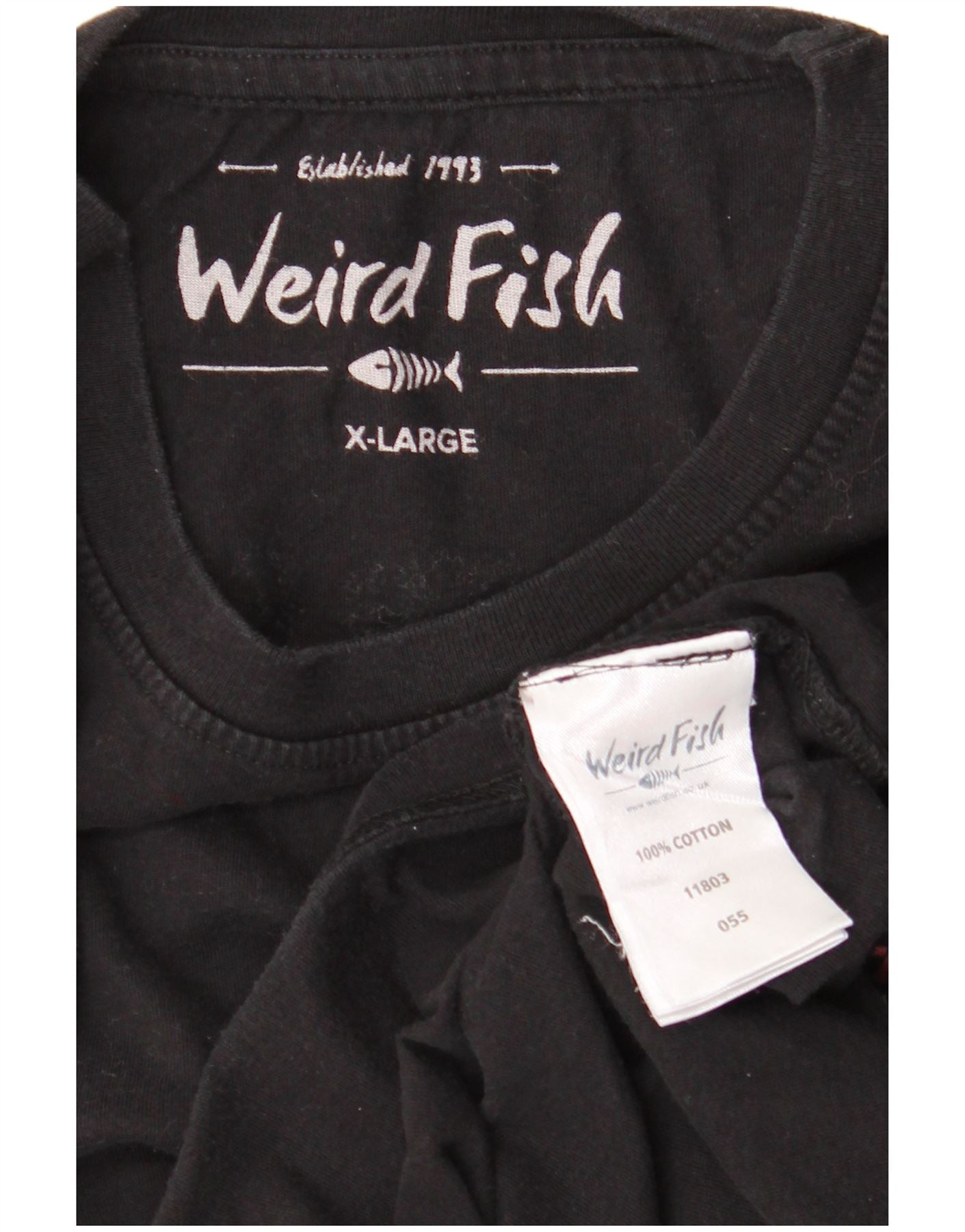 T-shirt grafica da uomo WEIRD FISH Top XL in cotone nero