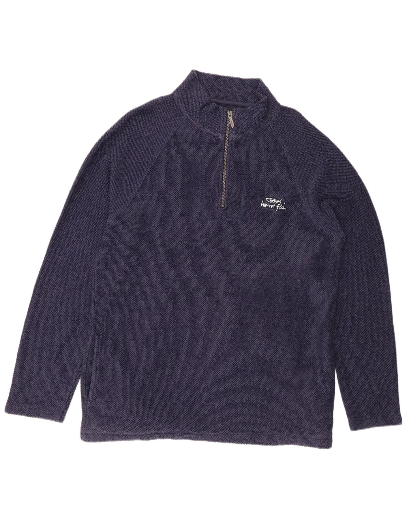 WEIRD FISH Felpa da uomo con zip e collo maglione XL blu navy in cotone