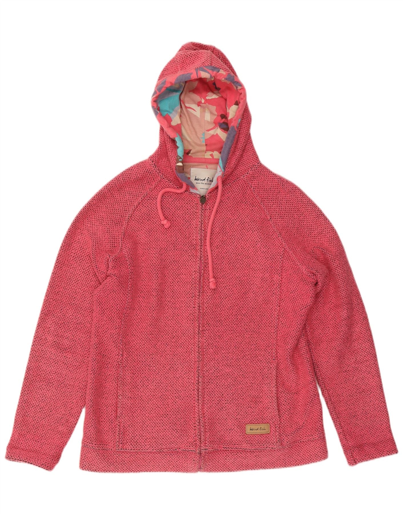 WEIRD FISH Maglione con cappuccio e zip da donna UK 16 Grande cotone rosa