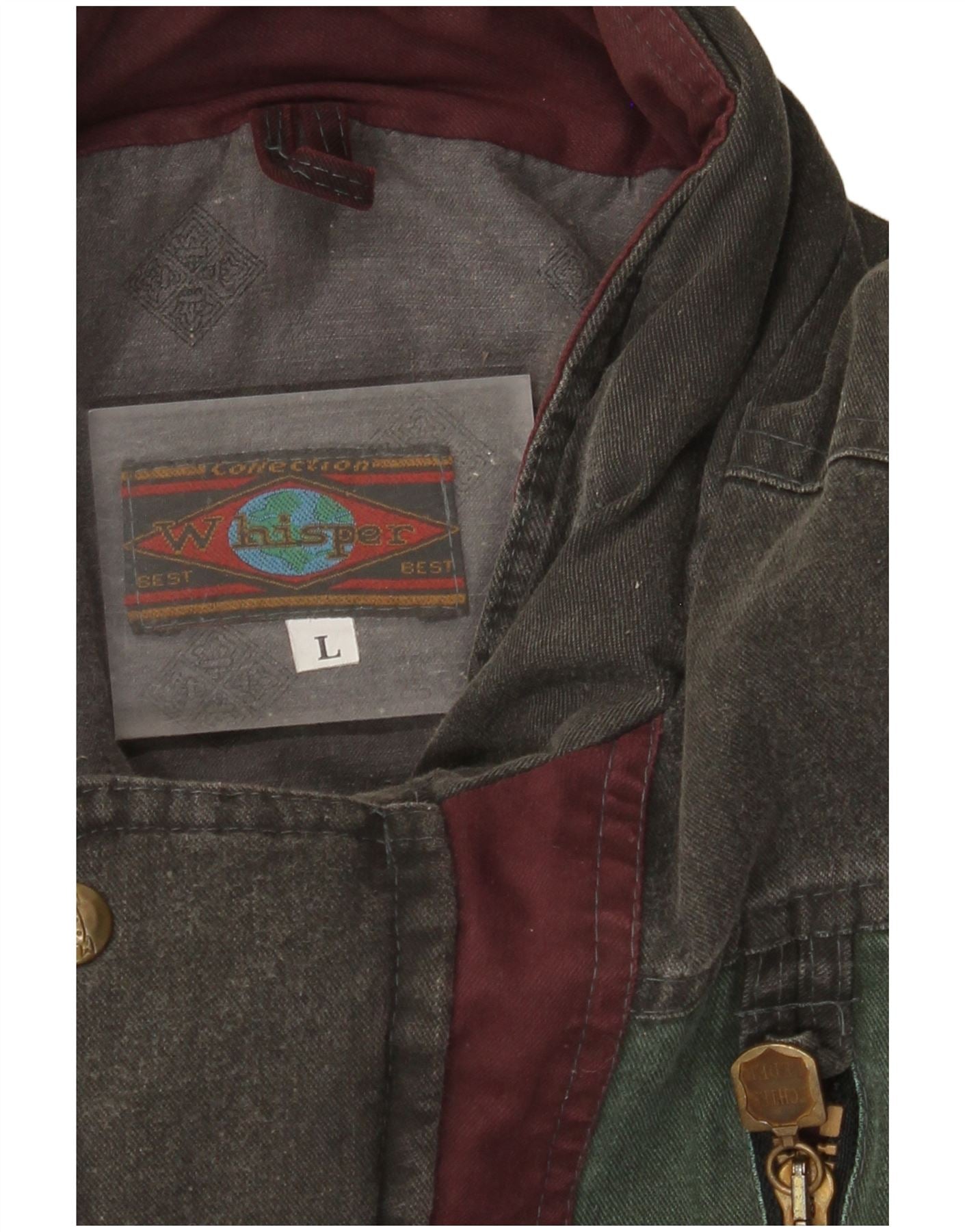 - Descrizione dell'IA: Questo bomber da uomo Whisper è realizzato in robusto denim, caratterizzato da un caratteristico motivo a blocchi di colore. Il grigio scuro costituisce il corpo principale, accentuato da ricchi pannelli bordeaux e verde intenso. Ha il collo alto e le maniche lunghe con polsini risvoltati. La chiusura full zip garantisce una vestibilità sicura. Molteplici tasche con zip aggiungono dettagli pratici. Una vestibilità regolare offre una vestibilità comoda.
