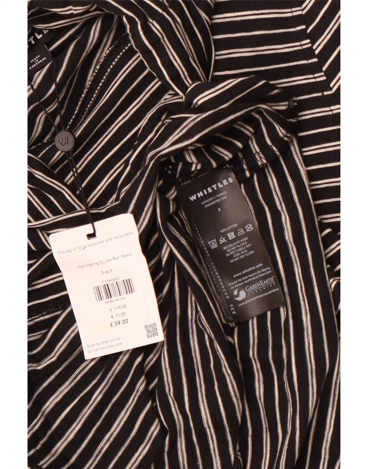 Home > Da donna > Abbigliamento Depop > WHISTLES Top da donna con collo alto a maniche lunghe UK 10 piccolo cotone a righe nere