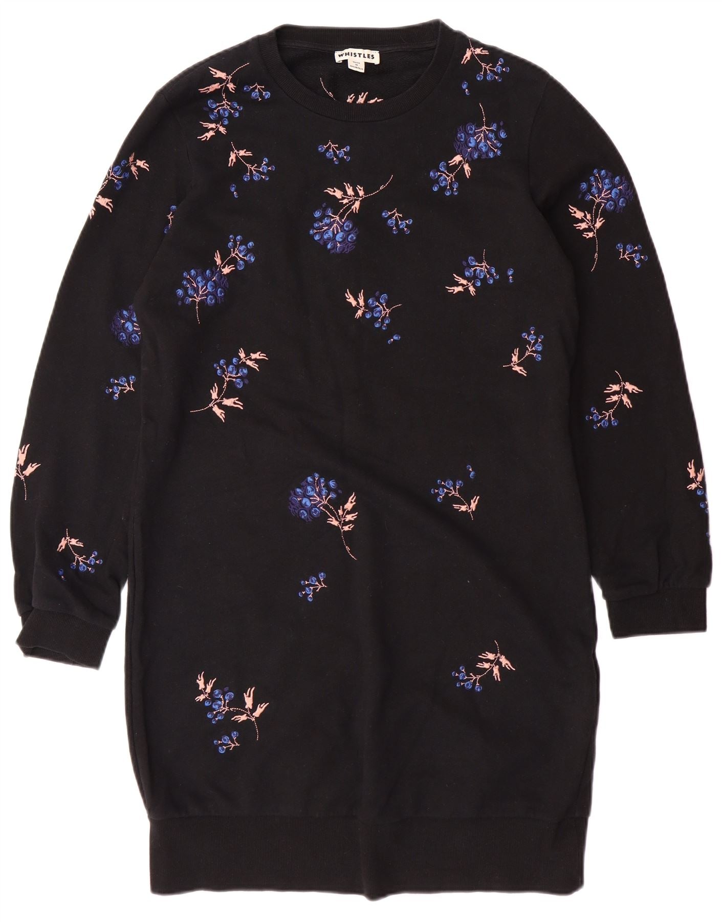 WHISTLES Abito maglione in felpa da donna UK 10 Piccolo cotone floreale nero