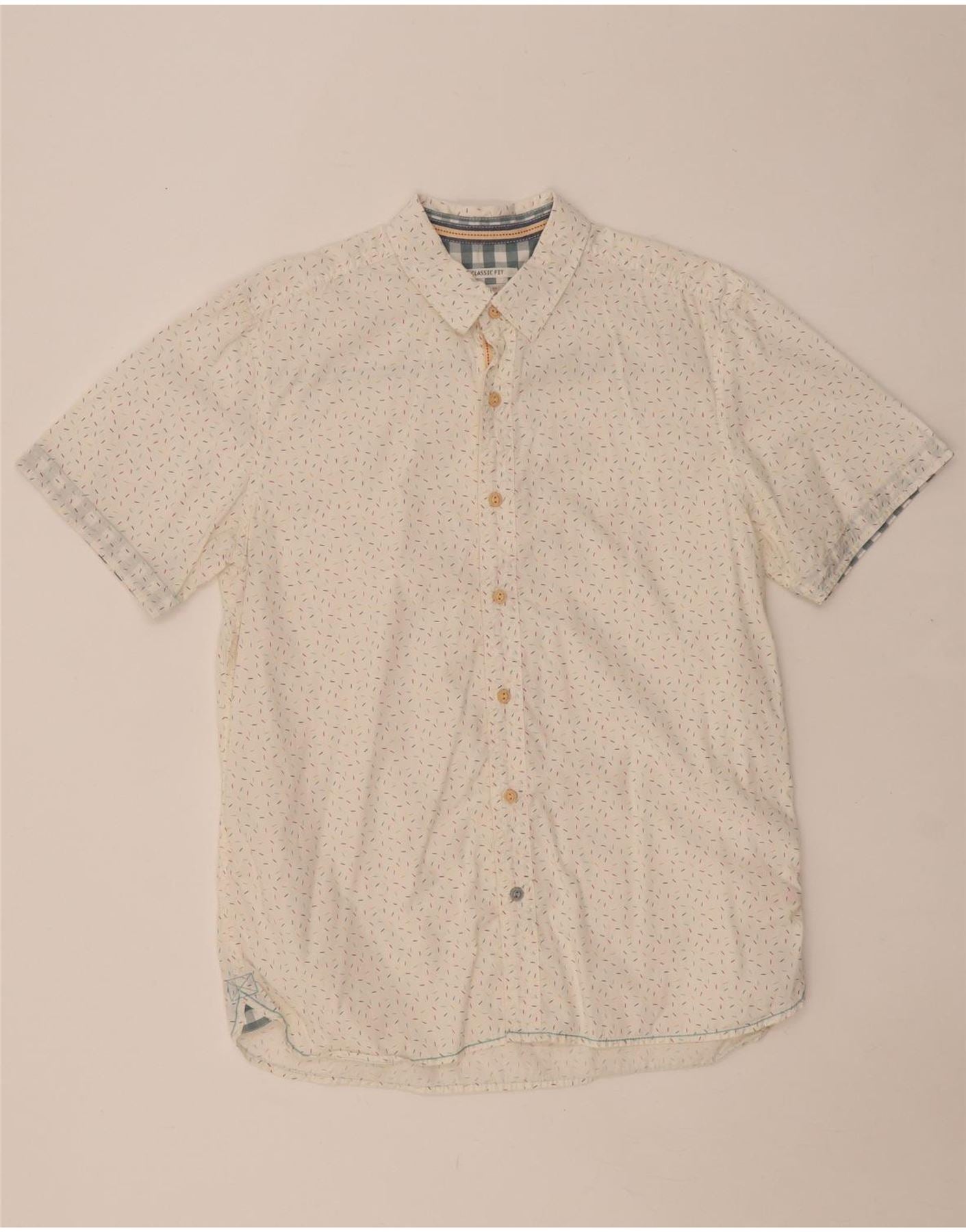 WHITE STUFF Camicia da uomo a maniche corte vestibilità classica piccola in cotone maculato bianco