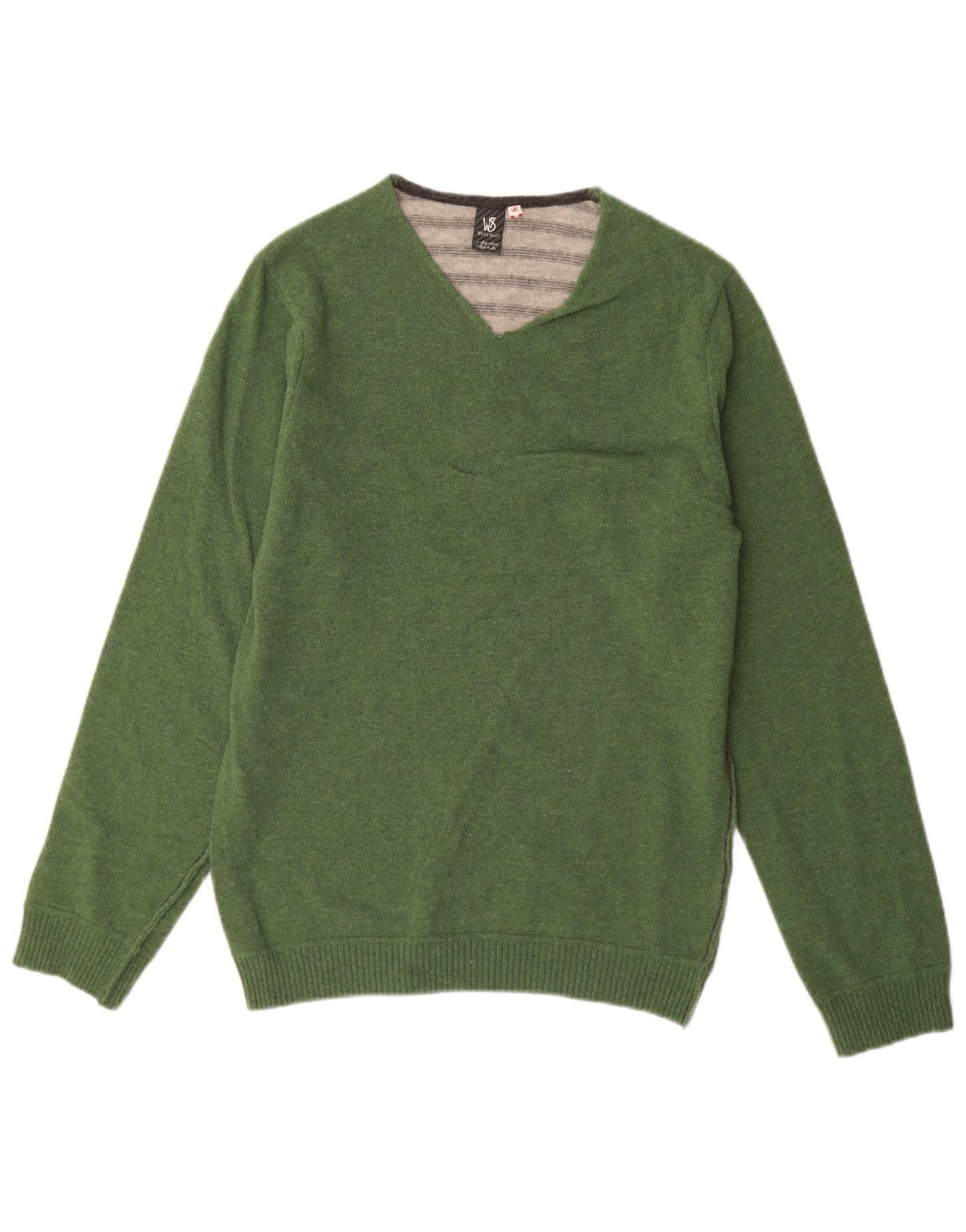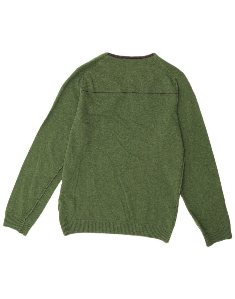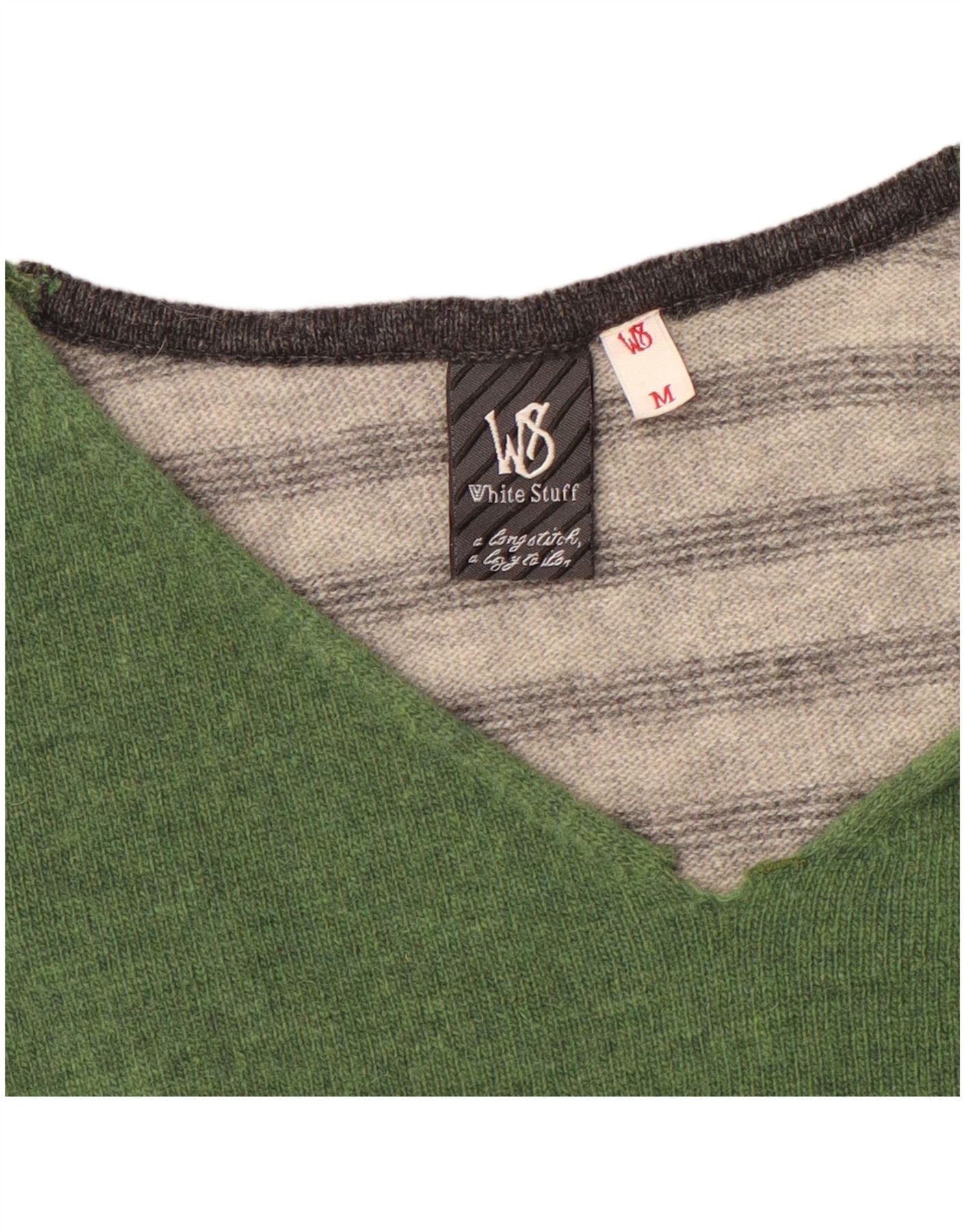 WHITE STUFF Mens V-Neck Jumper Sweater Medium Green Lambswool