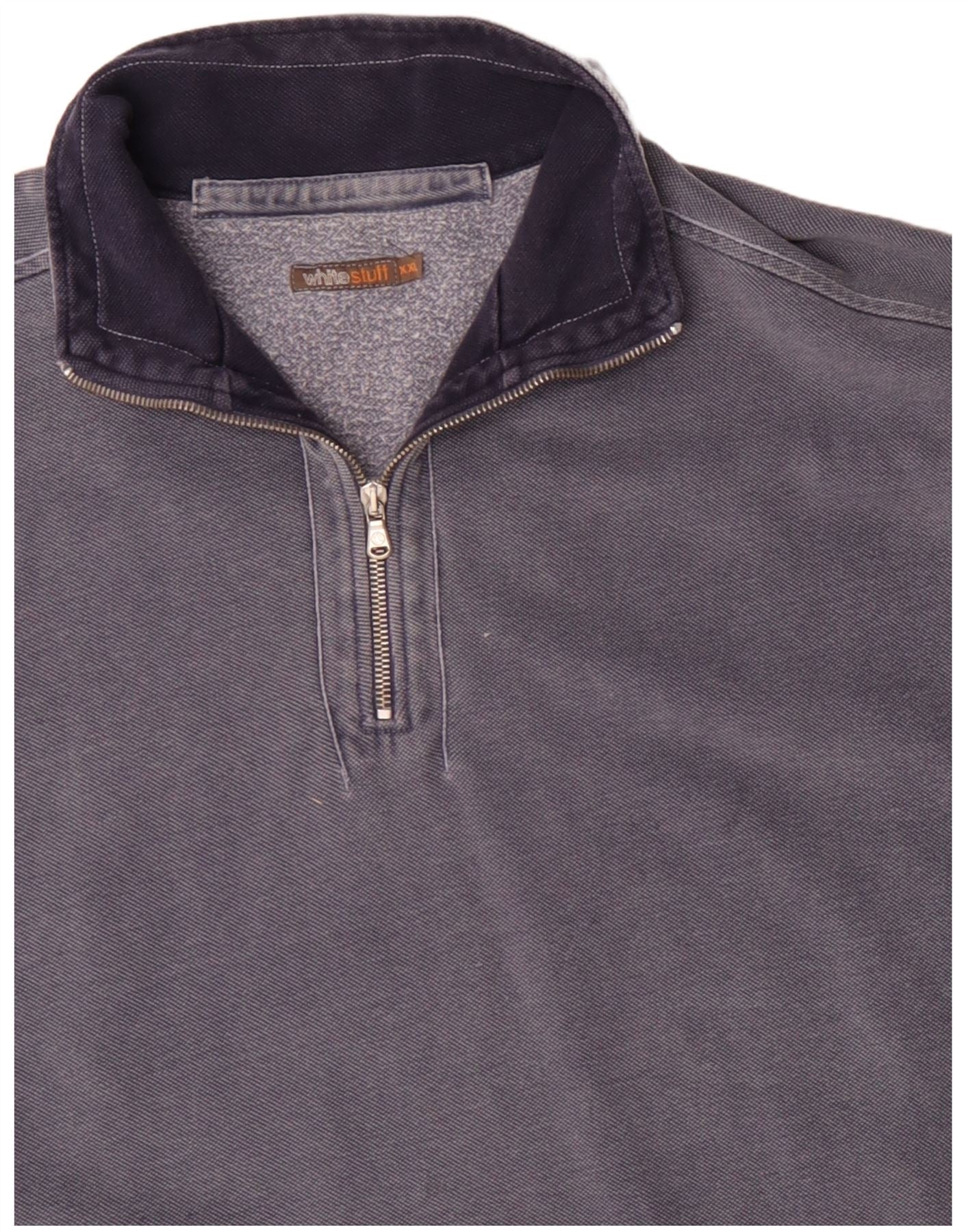 WHITE STUFF Felpa da uomo con collo con zip, maglione 2XL in cotone blu navy