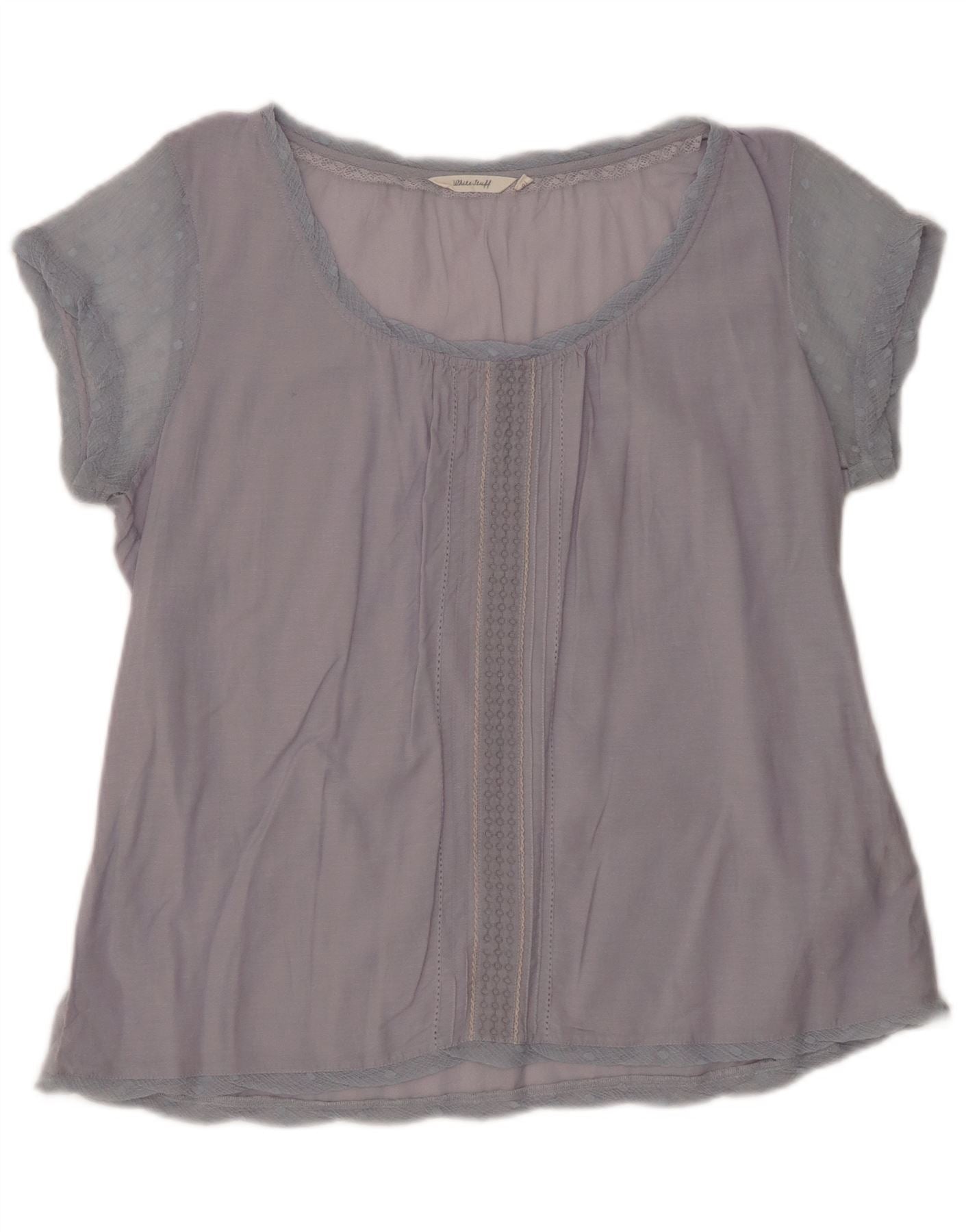 WHITE STUFF Camicetta da donna Top UK 16 Grande cotone blu