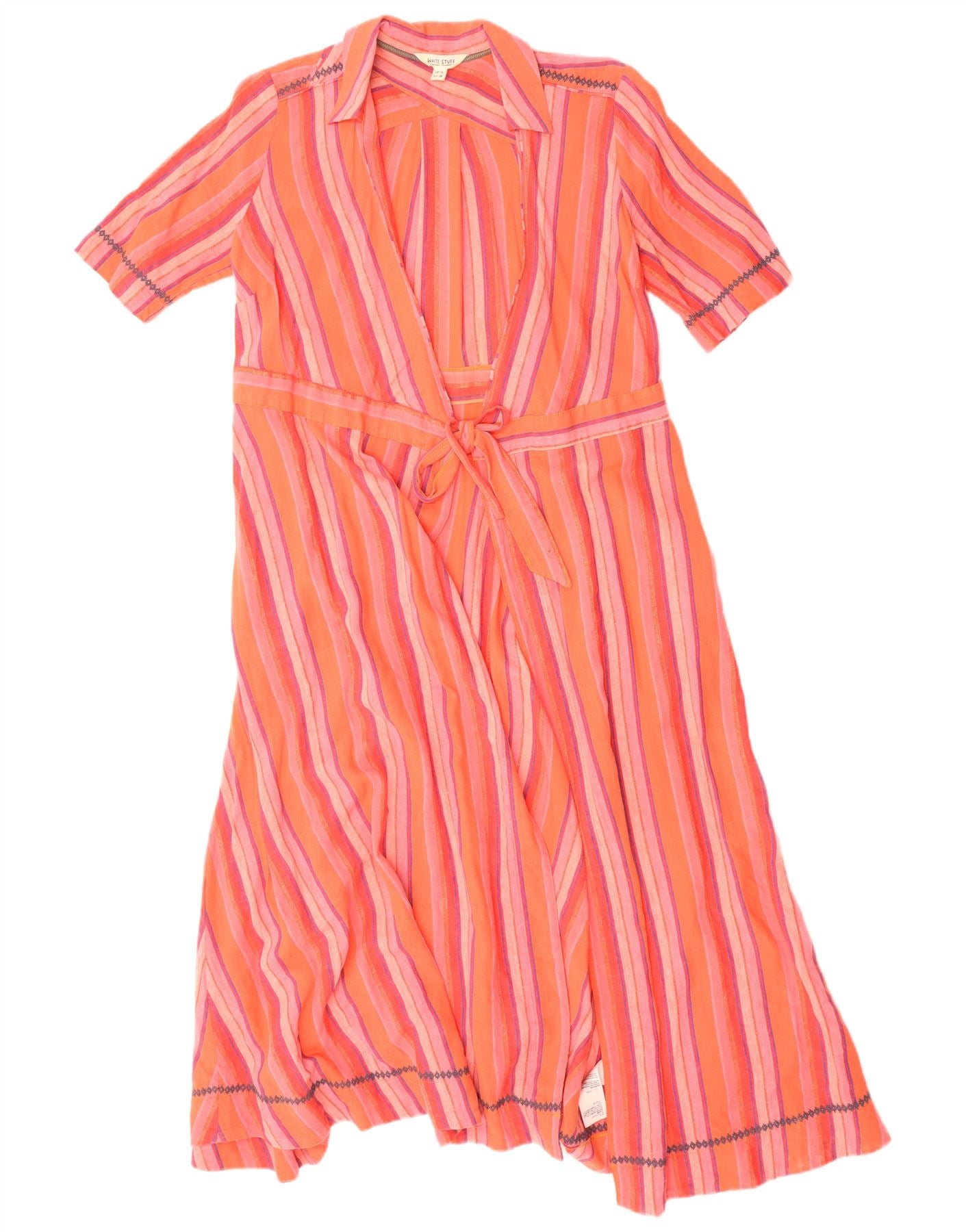 WHITE STUFF Womens Front Tie Wrap Dress UK 10 Small Multicoloured Striped
