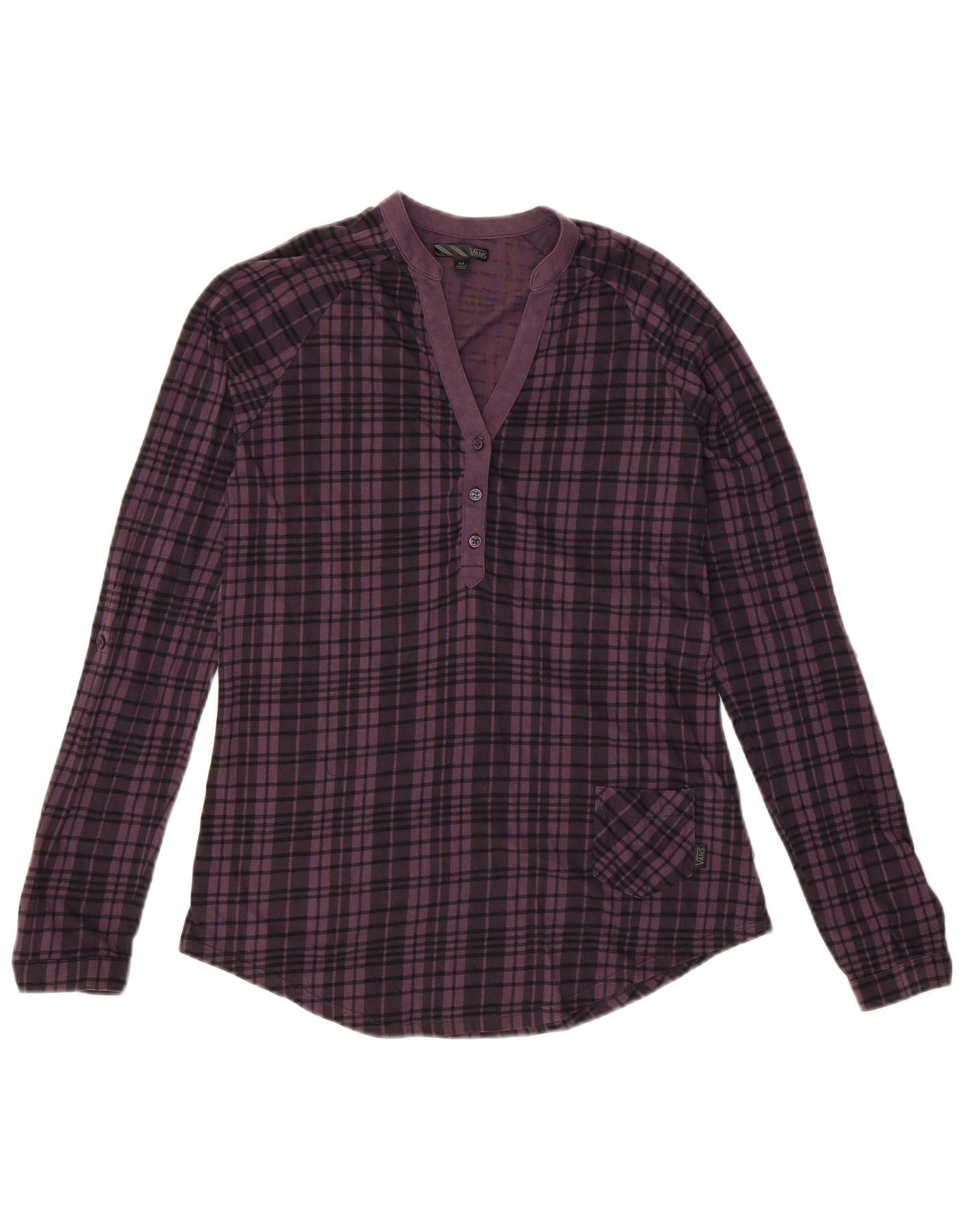 - Descrizione dell'IA: Questa camicetta da donna Vans è realizzata in morbido tessuto di cotone al 100%. Presenta un classico motivo scozzese viola. Lo scollo Henley con chiusura a bottoni offre un look casual ma raffinato. Le maniche lunghe offrono una copertura confortevole. La vestibilità regolare assicura facilità di indossabilità. Una discreta tasca sul petto aggiunge dettagli pratici. Questo top versatile è perfetto per lo styling quotidiano.