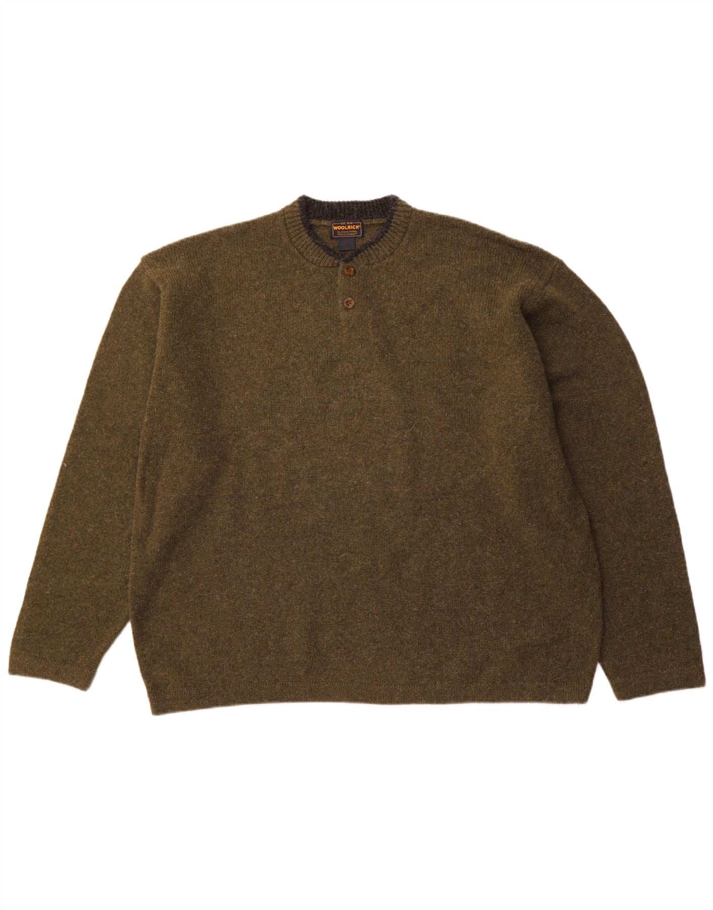 WOOLRICH Maglione da uomo con collo a bottoni 2XL Lana kaki