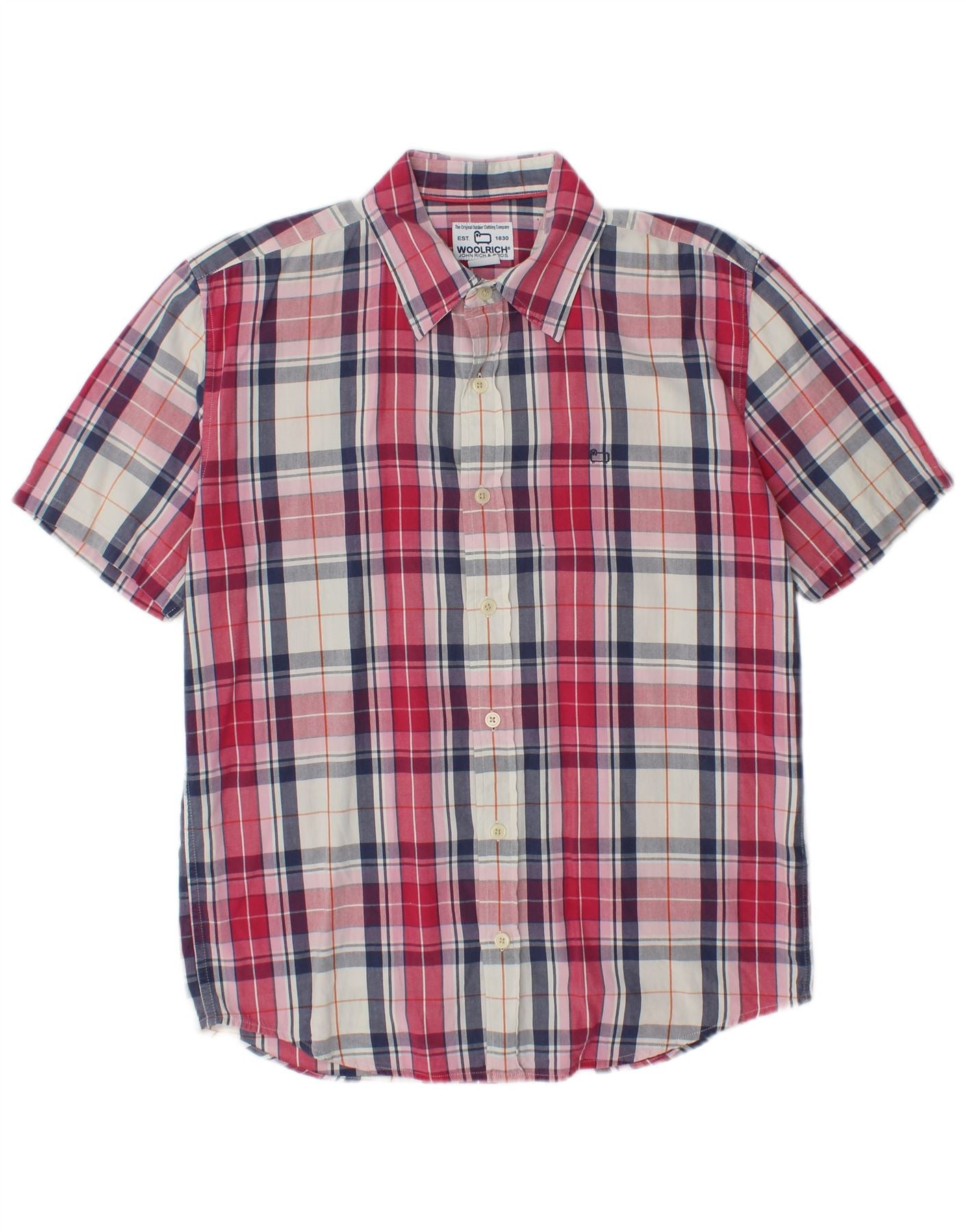 Camicia da uomo a maniche corte WOOLRICH in cotone a quadri rossi medi