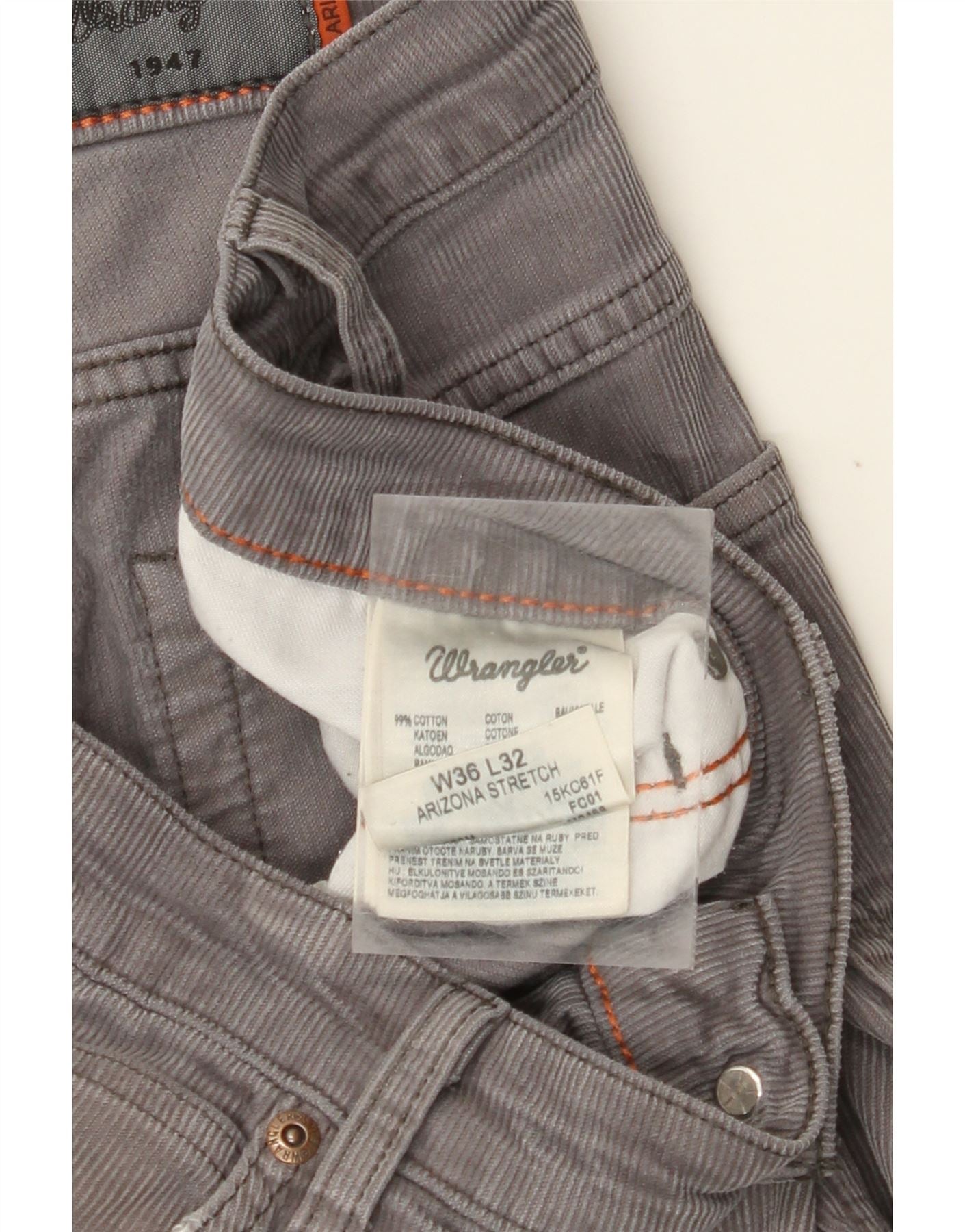 WRANGLER Pantaloni da uomo in velluto a coste dritti elasticizzati Arizona W36 L32 Grigi