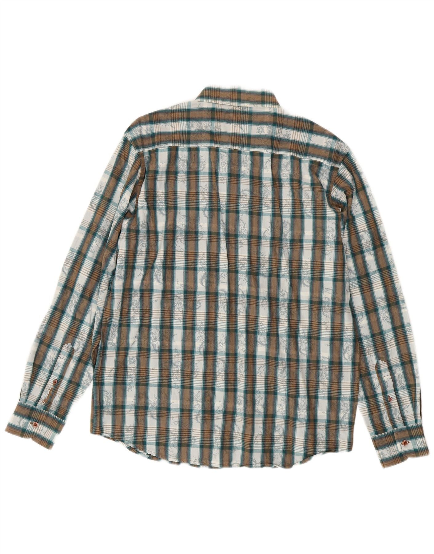 - Descrizione dell'IA: Questa camicia da uomo Wrangler è realizzata in cotone intrecciato al 100%, offrendo una sensazione confortevole. Presenta un motivo scozzese multicolore in marrone, verde e bianco, con un sottile disegno astratto sottostante. Lo scollo con colletto e l'abbottonatura frontale completa forniscono un look classico. Finitura maniche lunghe con polsini con bottoni. Due tasche sul petto aggiungono dettagli pratici. La sua vestibilità regolare garantisce una vestibilità comoda.