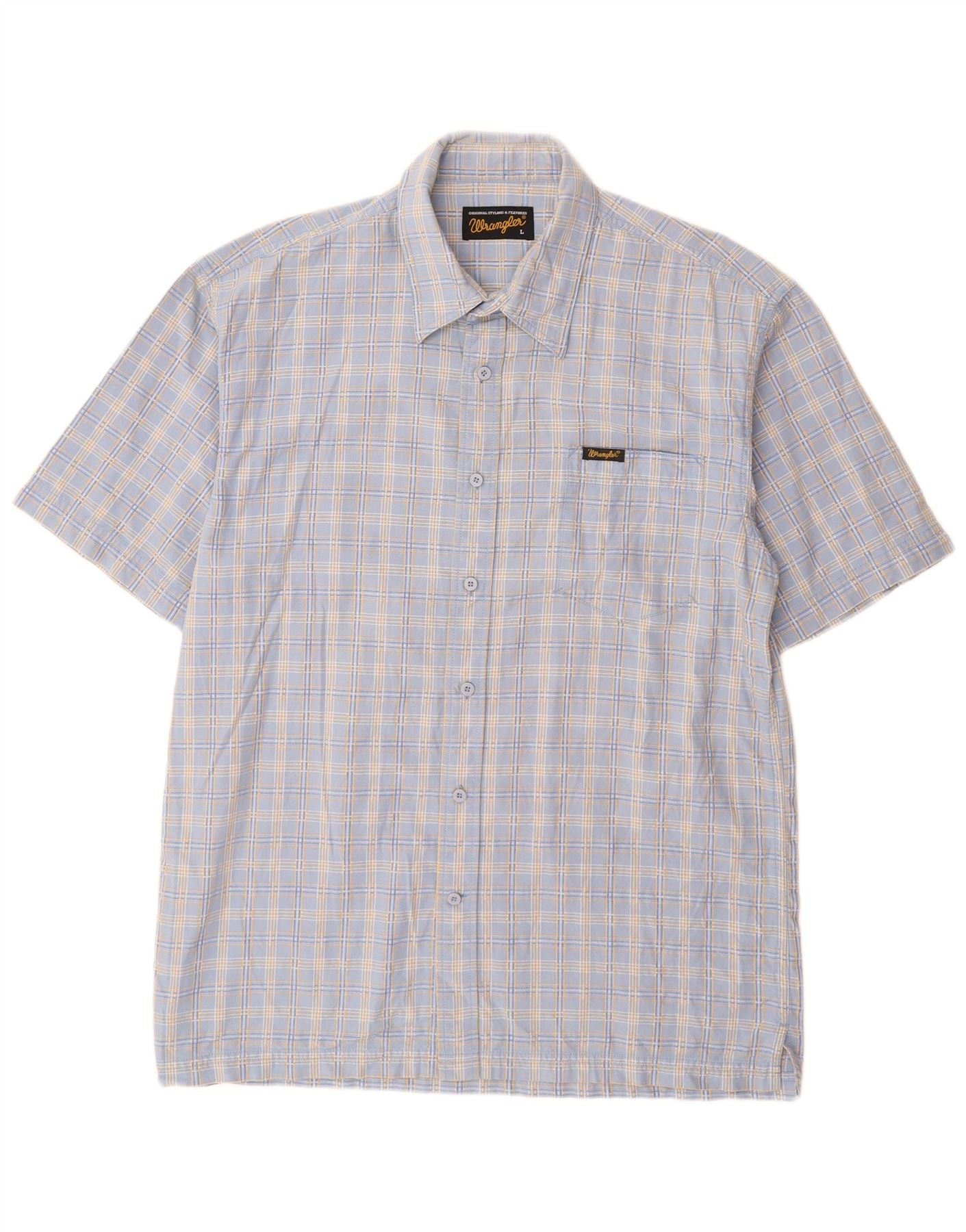 WRANGLER Camicia a maniche corte da uomo in cotone a quadri blu grandi