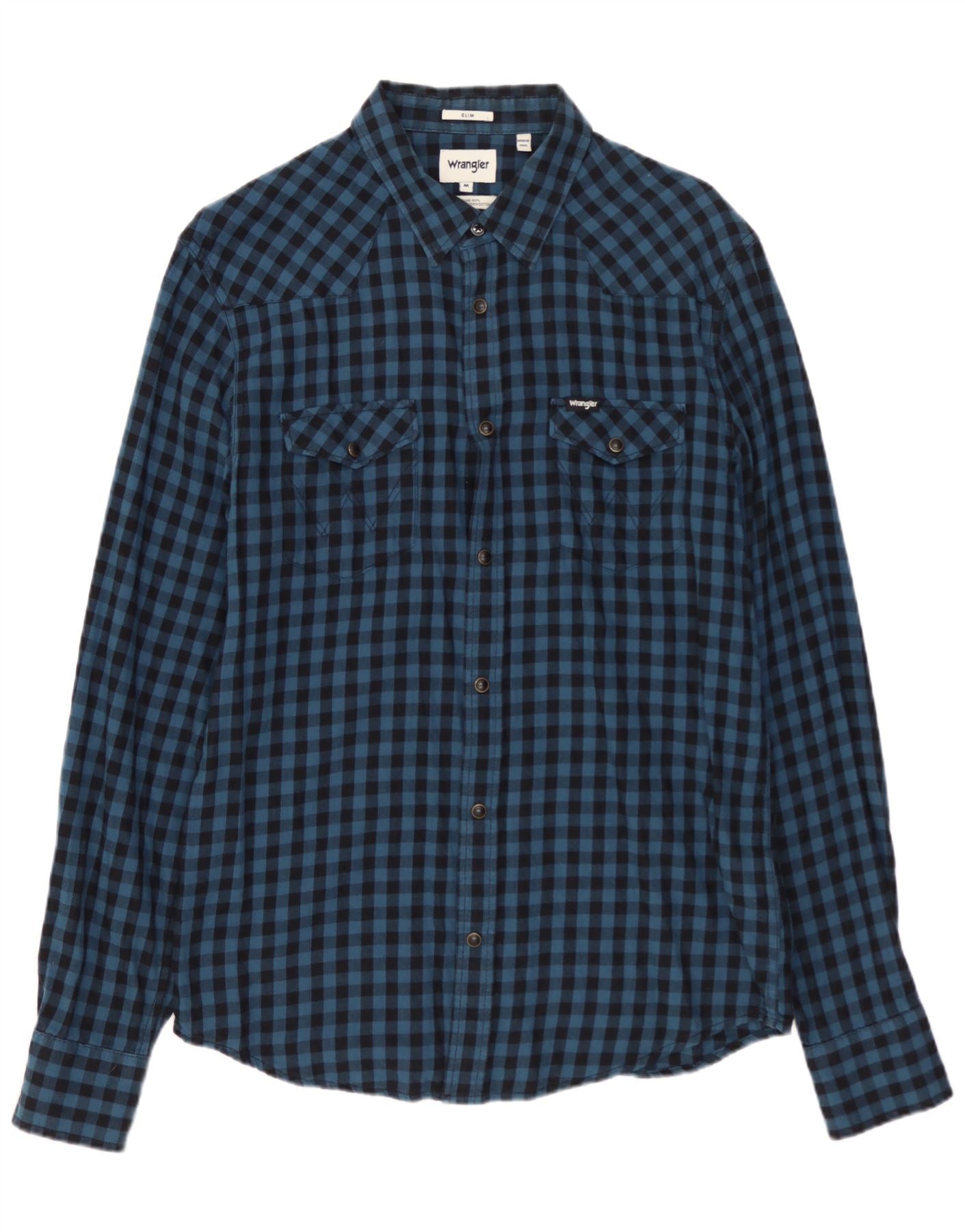 WRANGLER Camicia slim da uomo in flanella di cotone a quadretti blu medio