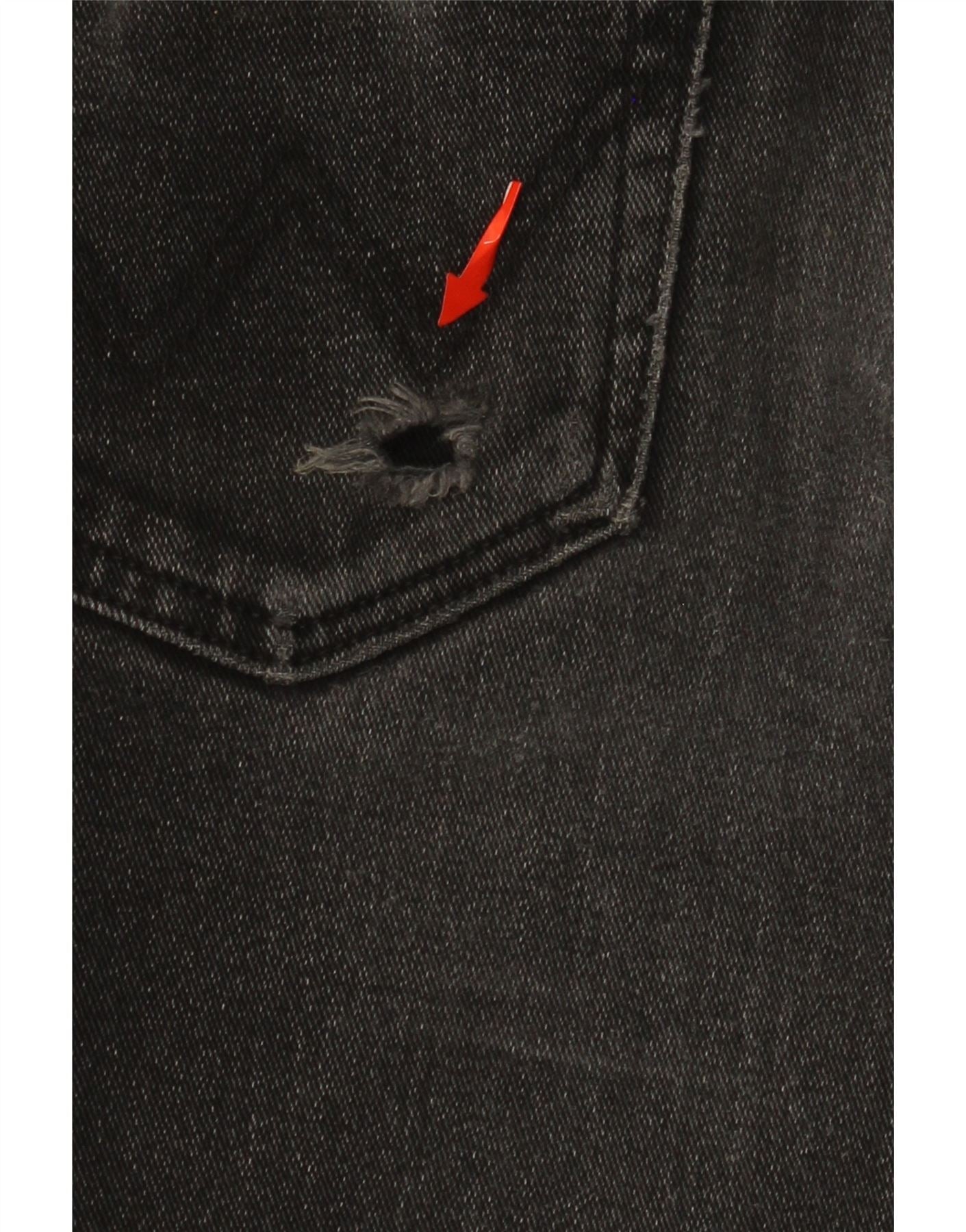 - Condizione: Condizioni d'uso discrete: l'oggetto è stato indossato spesso e può presentare numerosi difetti - orli usurati. Materiale usurato. Foro nella tasca e nella zona del cavallo. Materiale strappato sulle tasche.