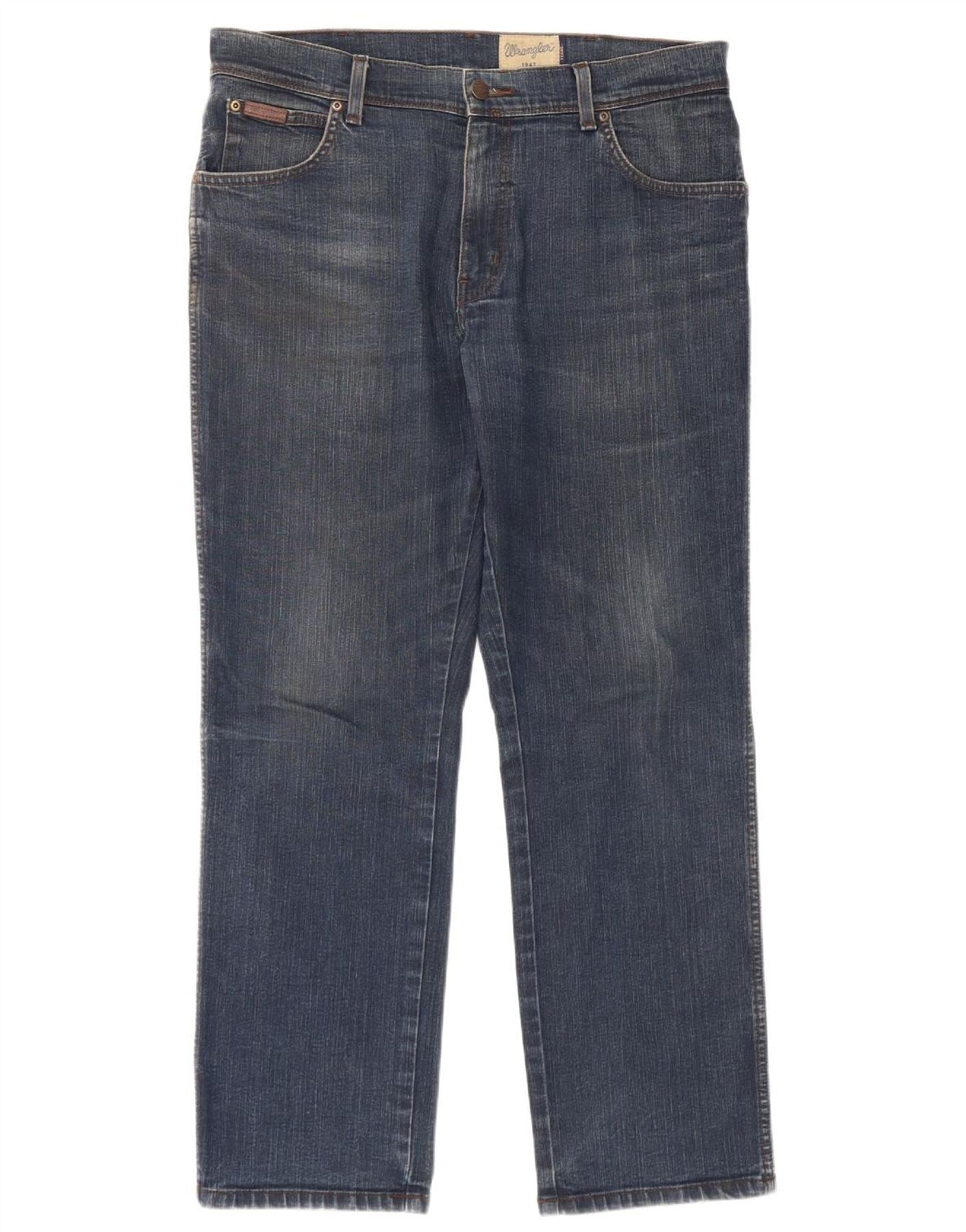 WRANGLER Mens Texas Stretch Straight Jeans W34 L30 Navy Blue Cotton