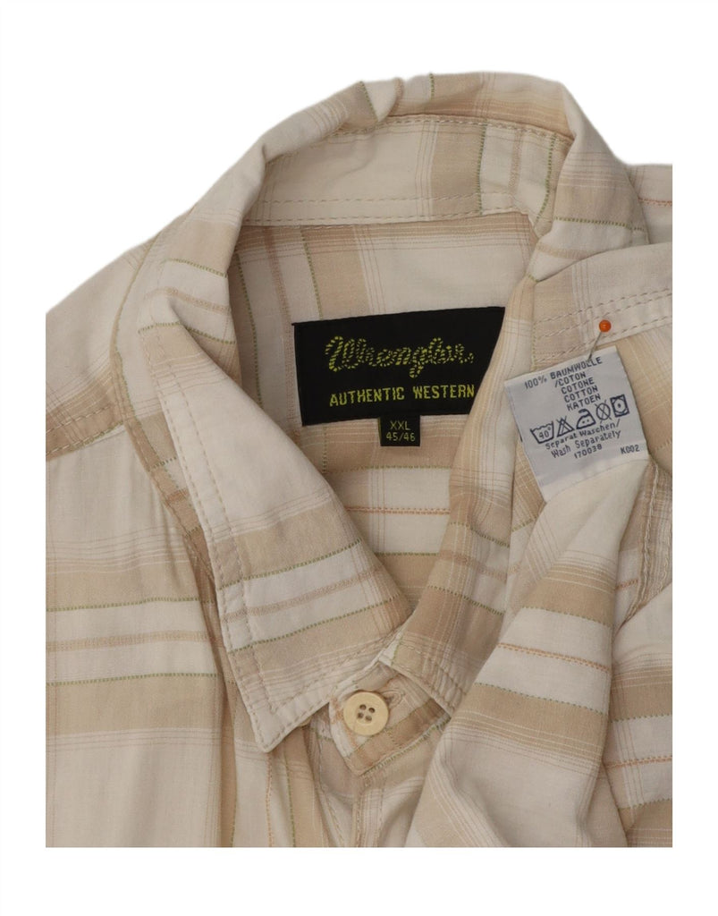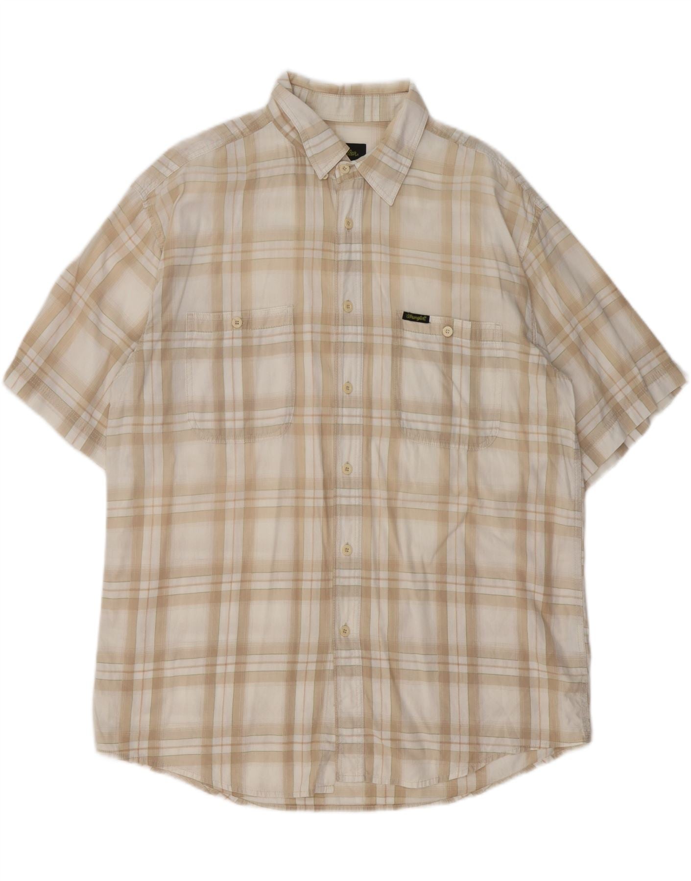 WRANGLER Mens Western Short Sleeve Shirt Size 45/46 2XL Beige Check Cotton