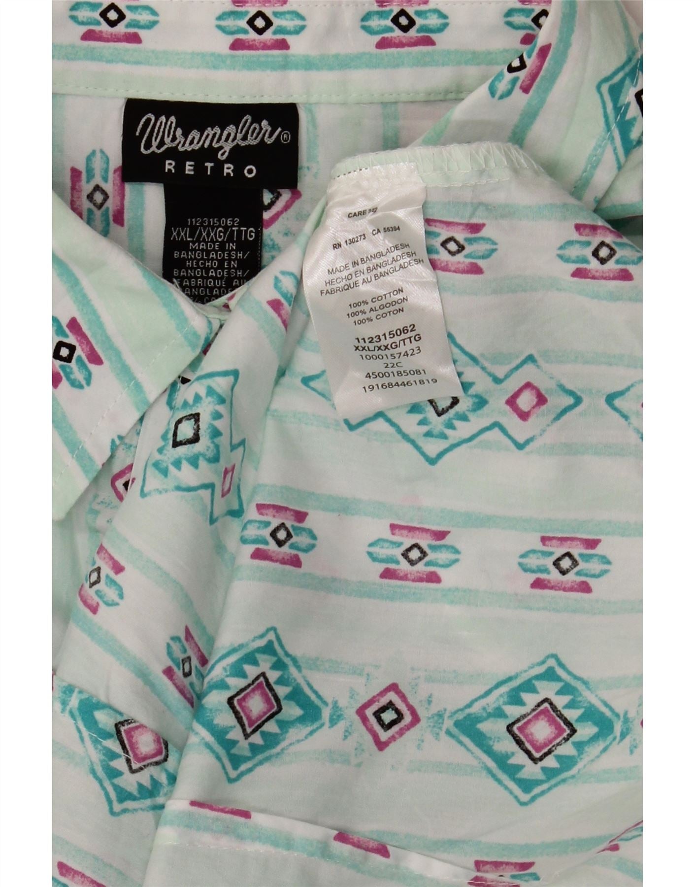 Camicia retrò da donna WRANGLER UK 20 2XL Cotone geometrico turchese