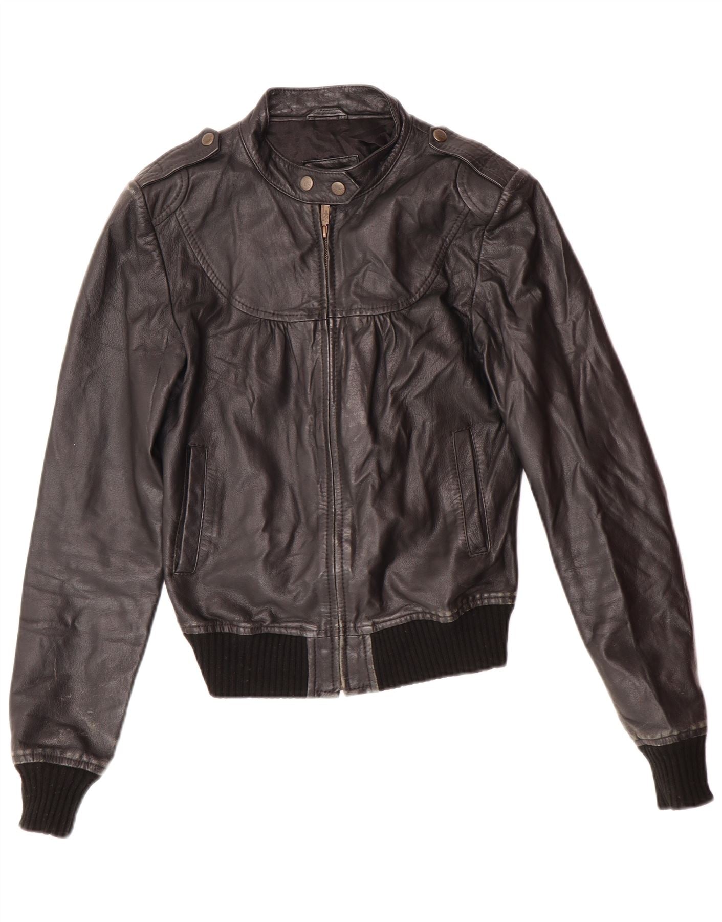 Giacca in pelle da donna XDYE UK 10 Piccolo motociclista in pelle nera