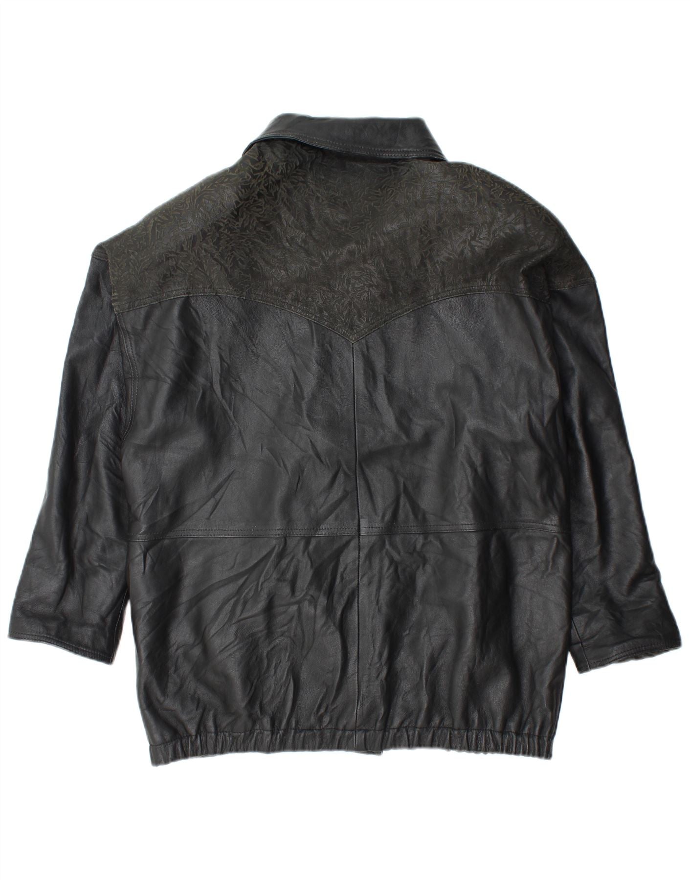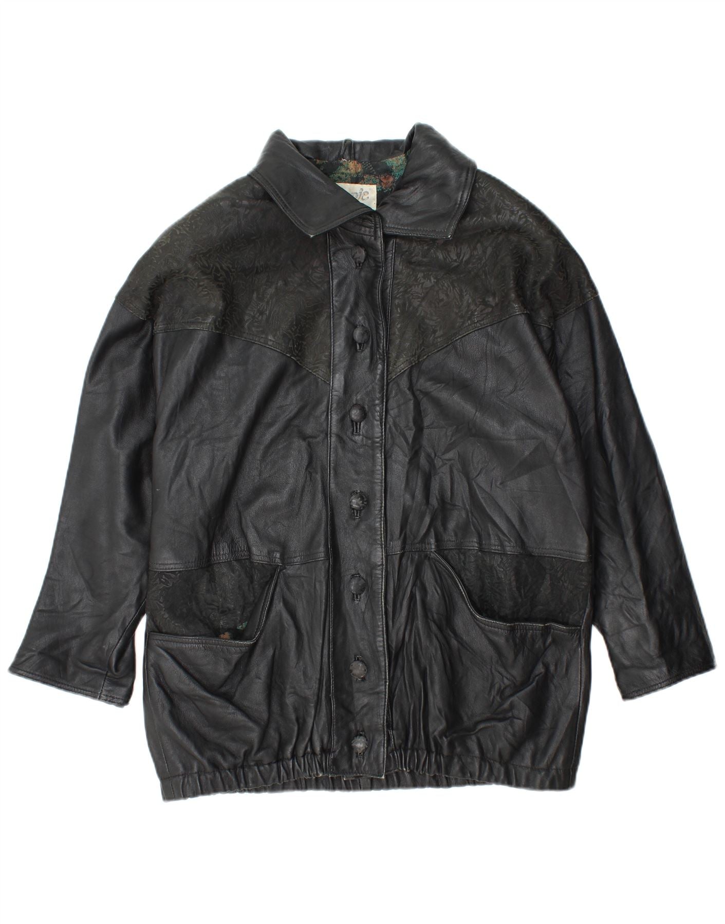 Giacca in pelle oversize da donna YUPPIE UK 18 XL Nera floreale