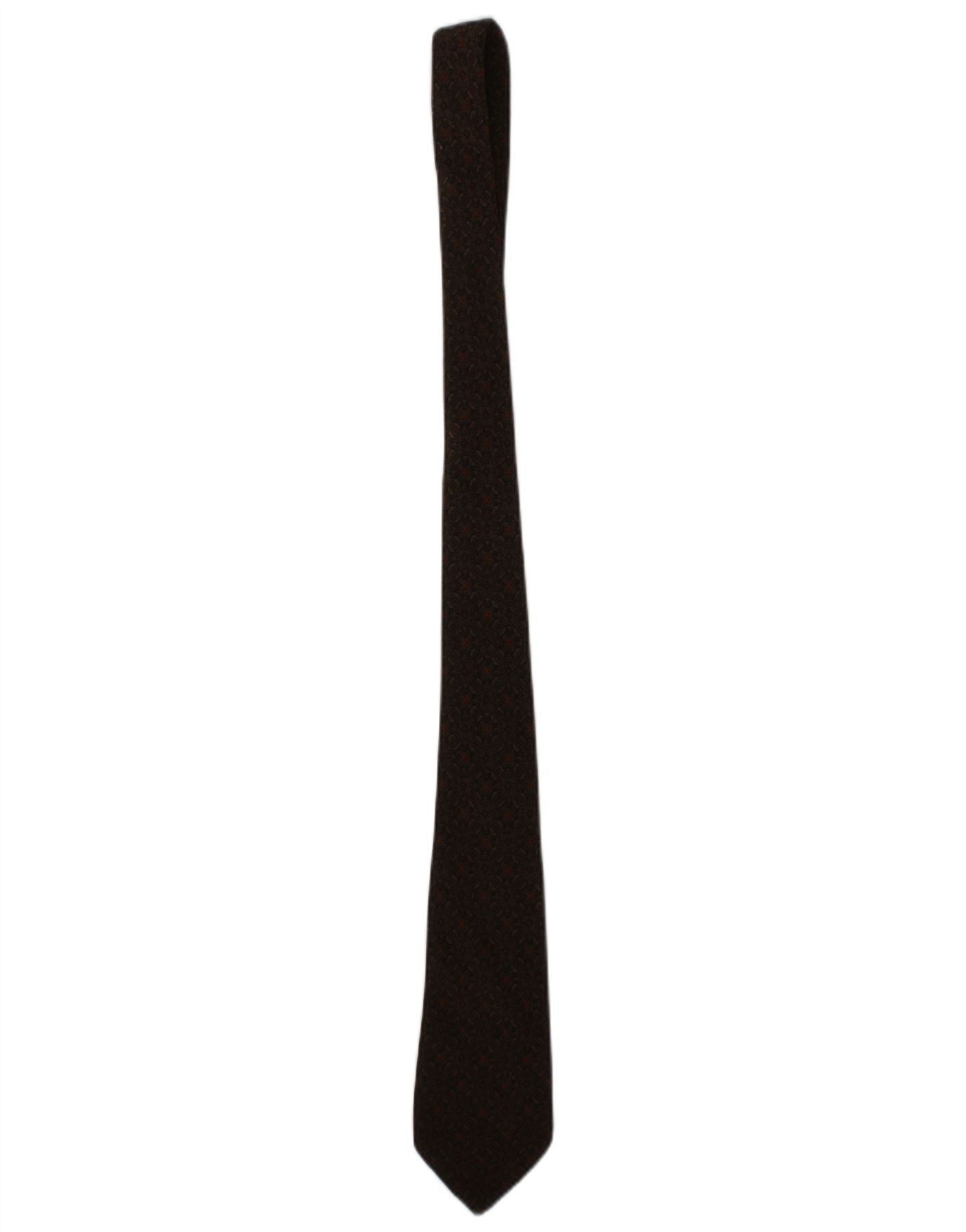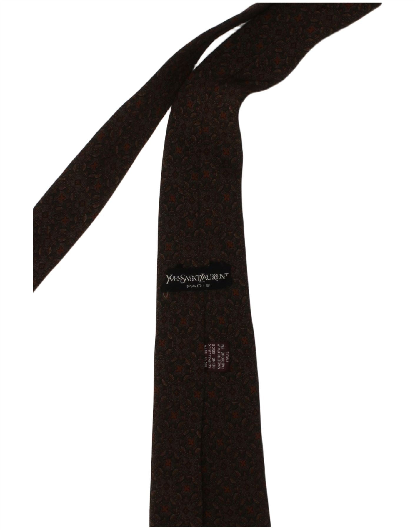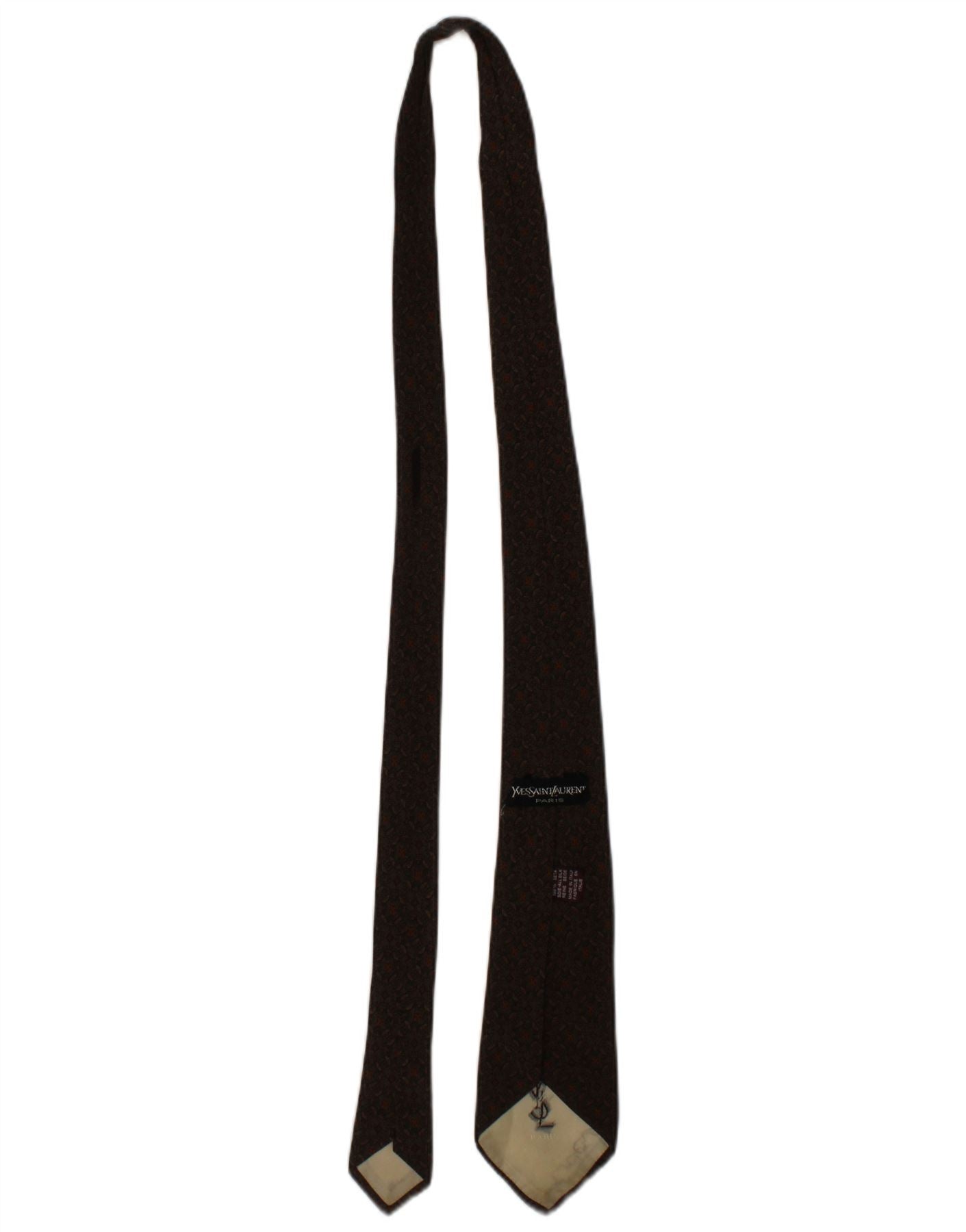 YVES SAINT LAURENT Mens Tie One Size Brown Geometric Silk Classic