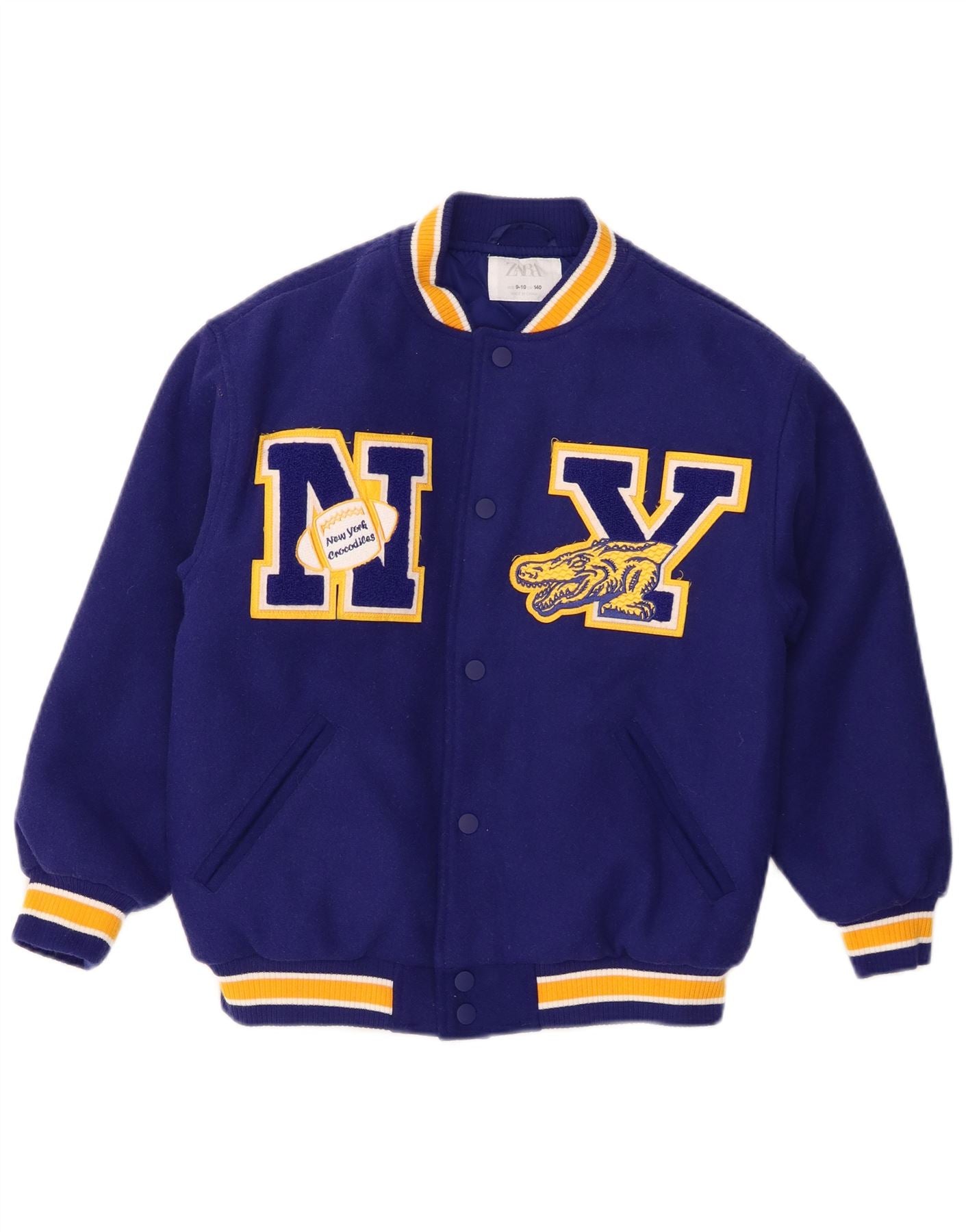 Giacca college ZARA per ragazze New York Crocodiles Graphic 9-10 anni Blu Navy