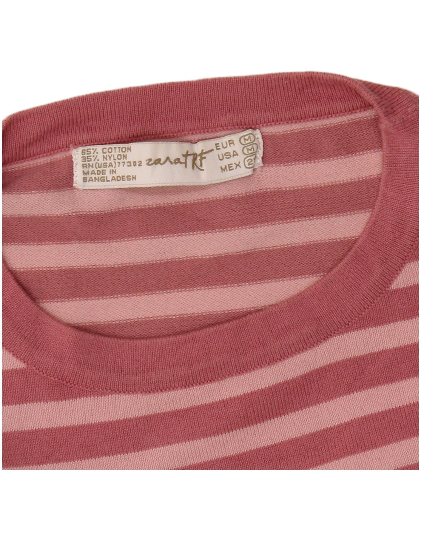 Top ZARA Bambina Manica 3/4 11-12 Anni Cotone Rigato Rosa Medio