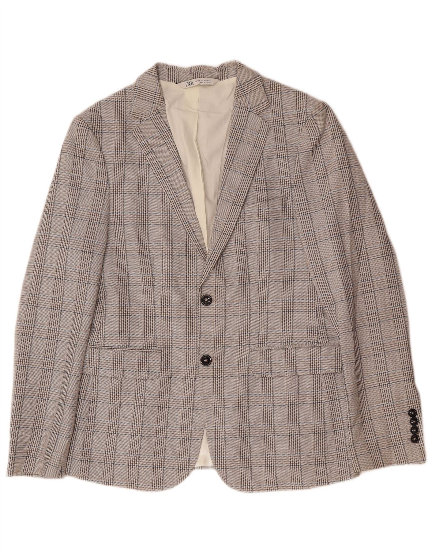 ZARA Giacca Blazer a 2 Bottoni da Uomo EU 48 Poliestere Pied De Poule Grigio Medio