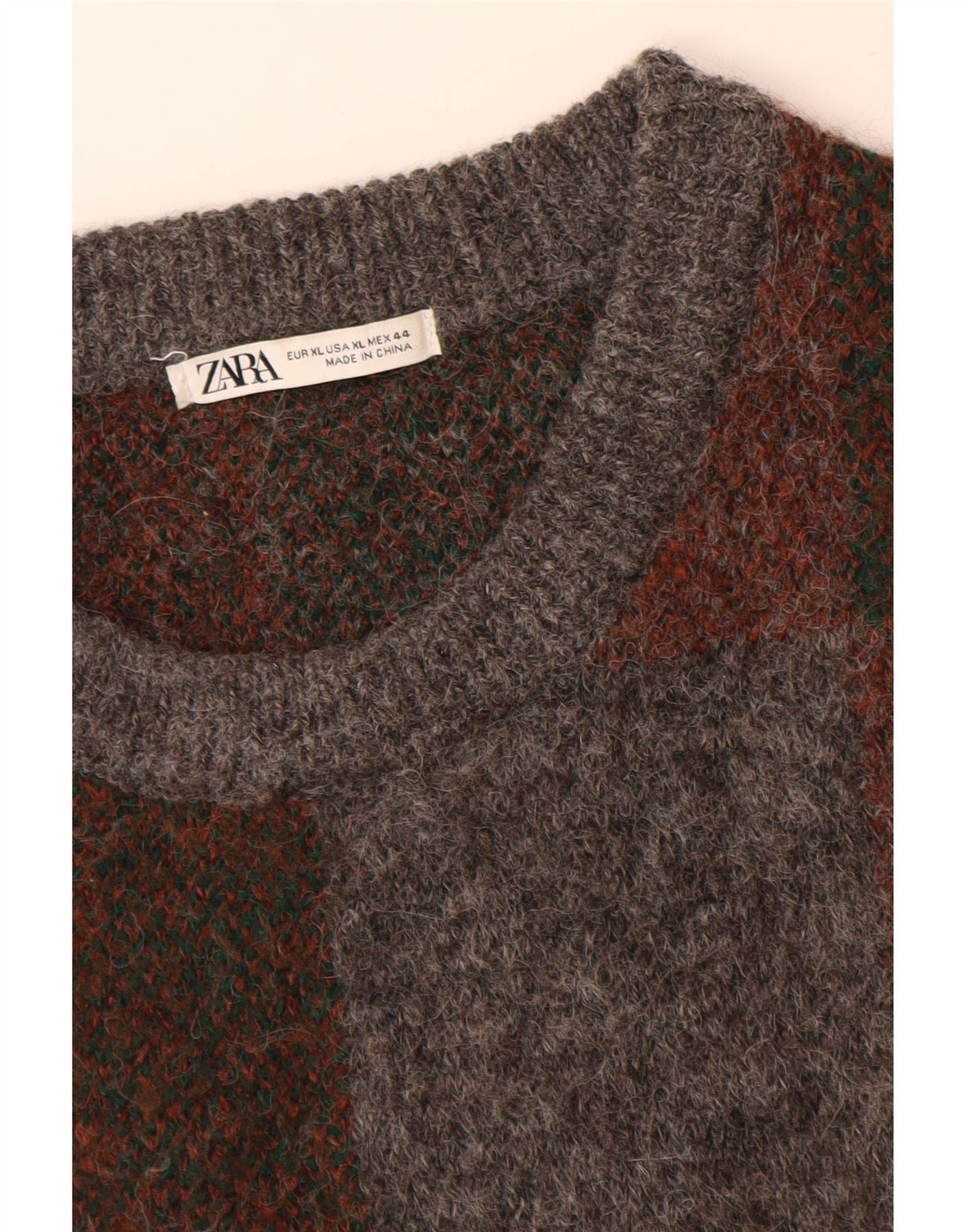 - Descrizione dell'IA: Questo maglione girocollo da uomo Zara è realizzato in un morbido tessuto a maglia strutturato. Presenta un audace motivo a quadri nei toni del grigio, marrone e bordeaux scuro. Lo scollo rotondo e le maniche lunghe con risvolto offrono una silhouette classica. La sua vestibilità rilassata garantisce un'usura confortevole. Questo modello di maglione combina lo stile retrò con il comfort moderno, perfetto per la stratificazione.