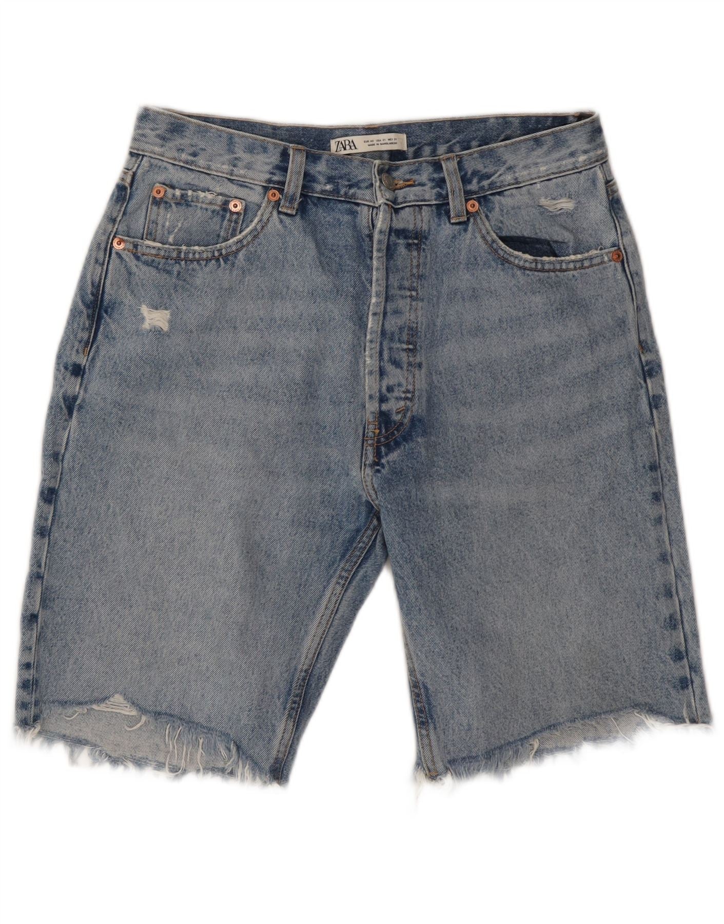 Pantaloncini di jeans invecchiati ZARA da uomo W31 cotone blu medio