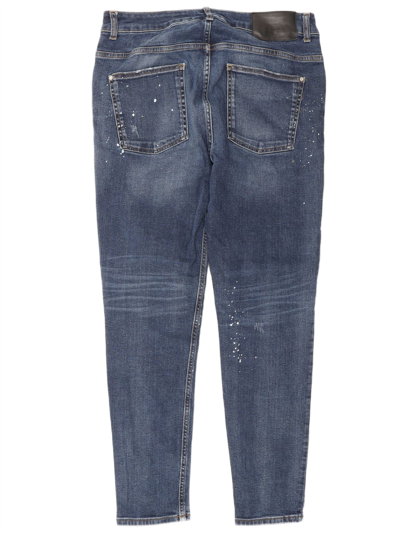Jeans skinny effetto invecchiato ZARA da uomo EU 46 XL W36 L30 cotone maculato blu