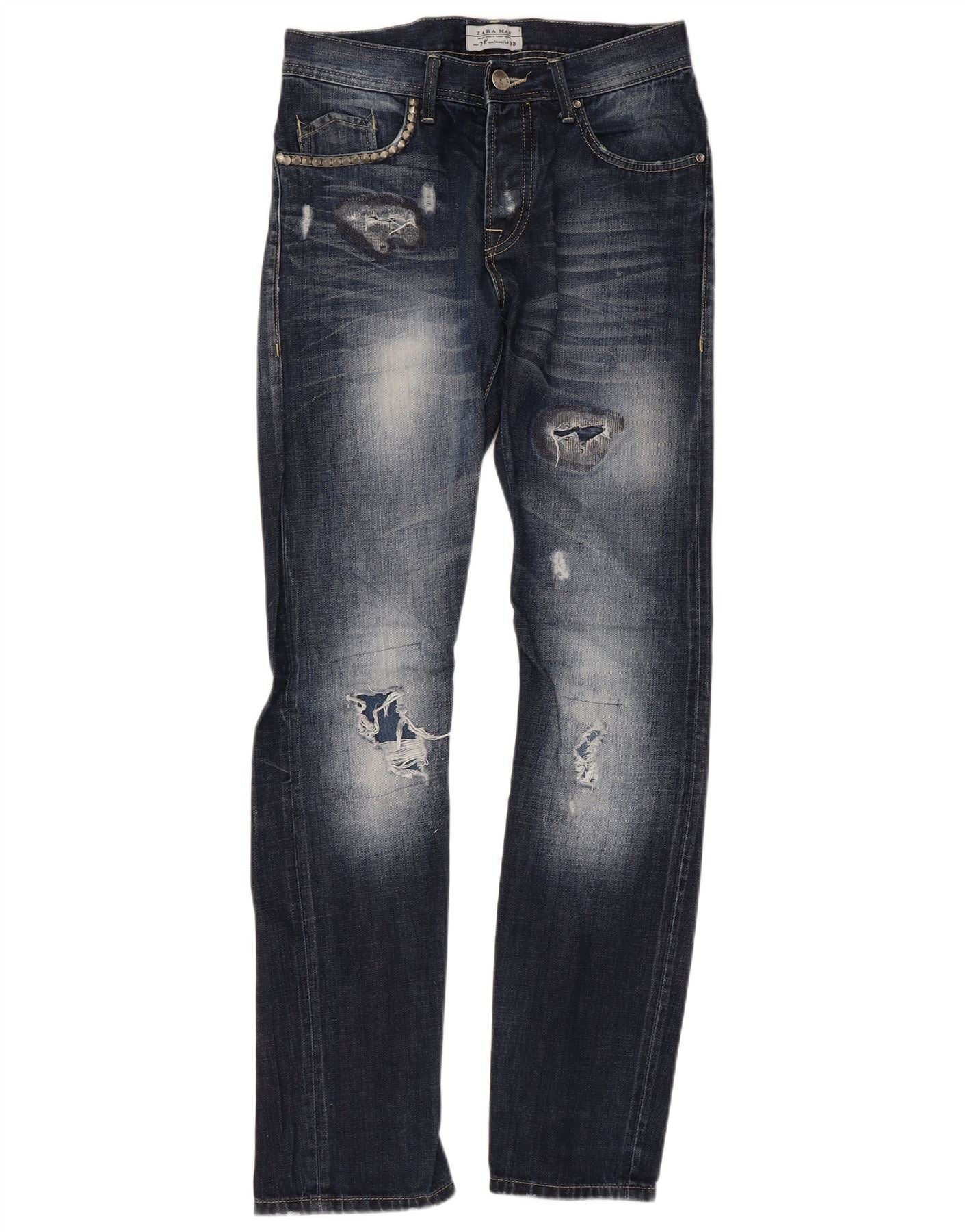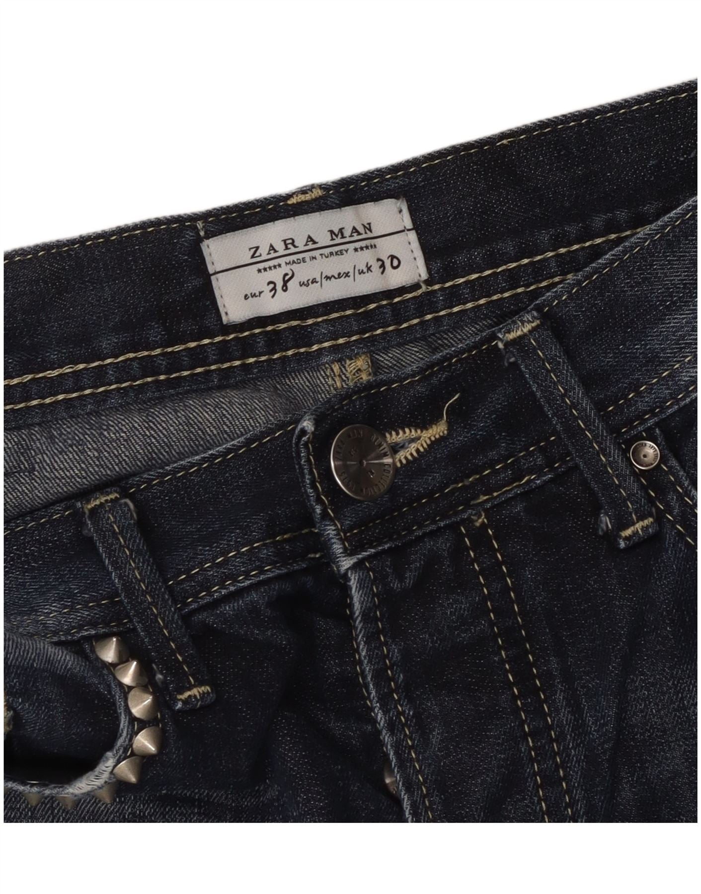 Jeans slim effetto consumato ZARA da uomo EU 38 piccolo W30 L33 blu navy