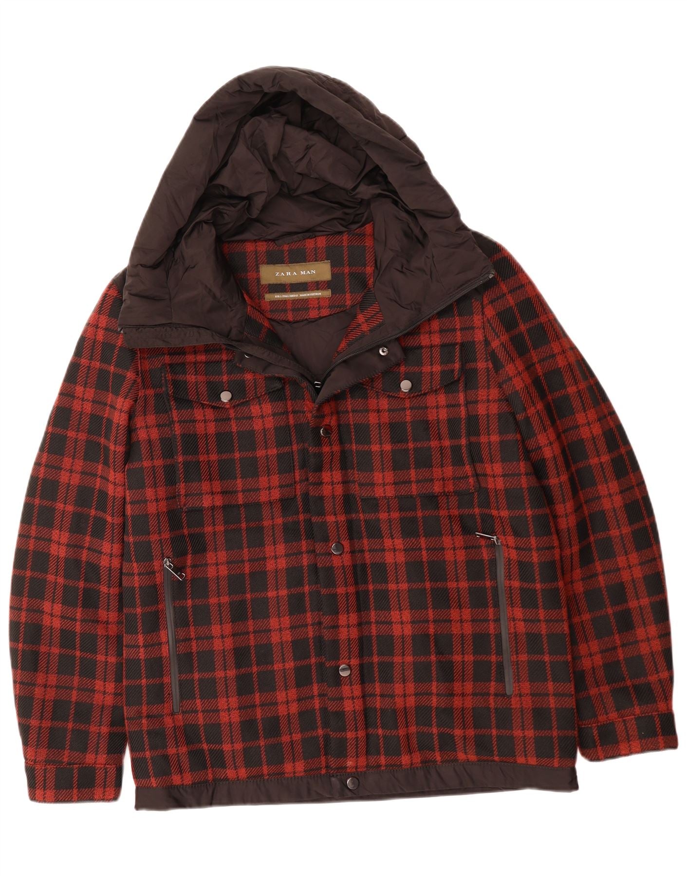 Giubbotto bomber con cappuccio ZARA da uomo UK 40 poliestere a quadri rossi grandi