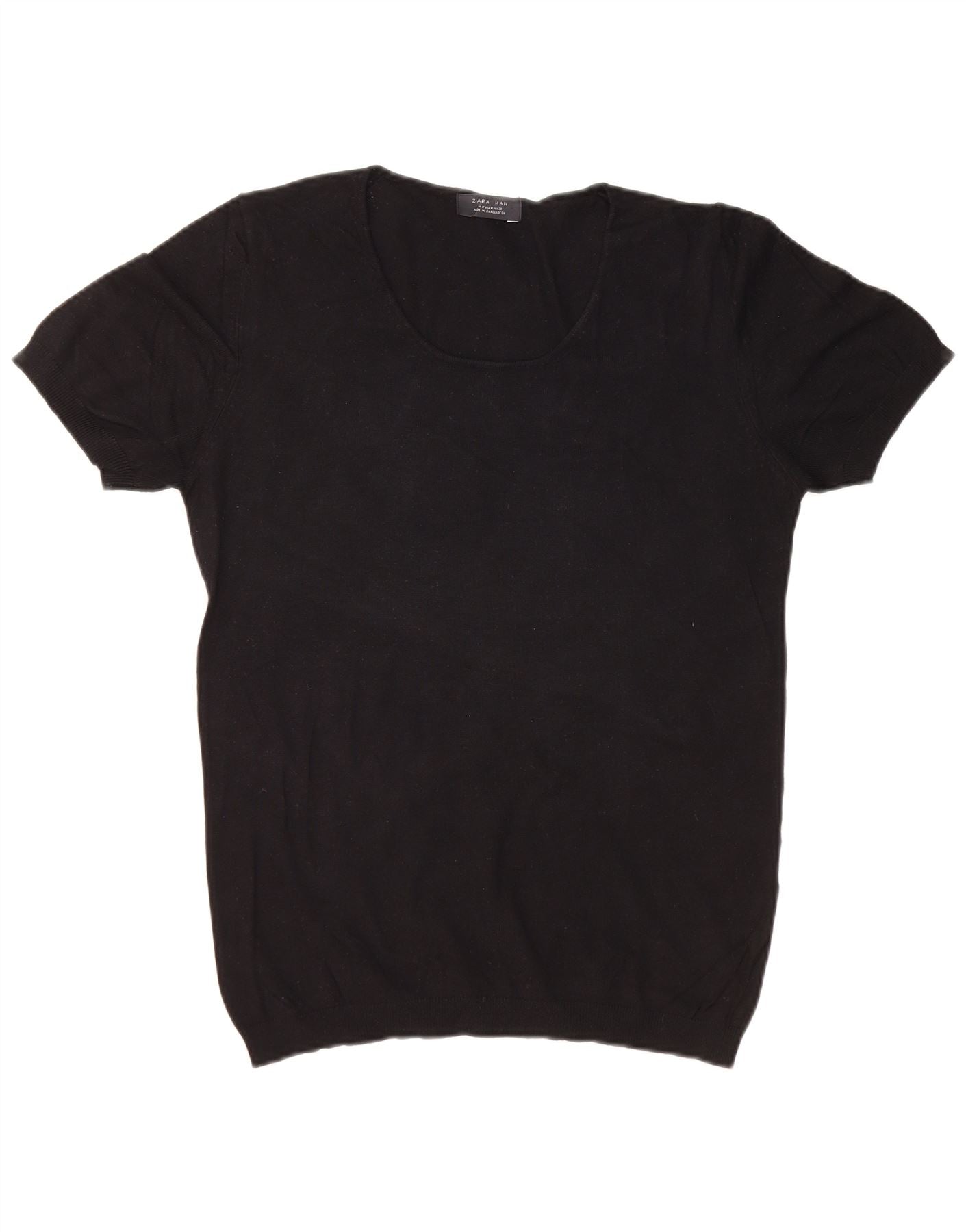 ZARA Maglione da Uomo a Maniche Corte con Scollo a Barca Nero Medio