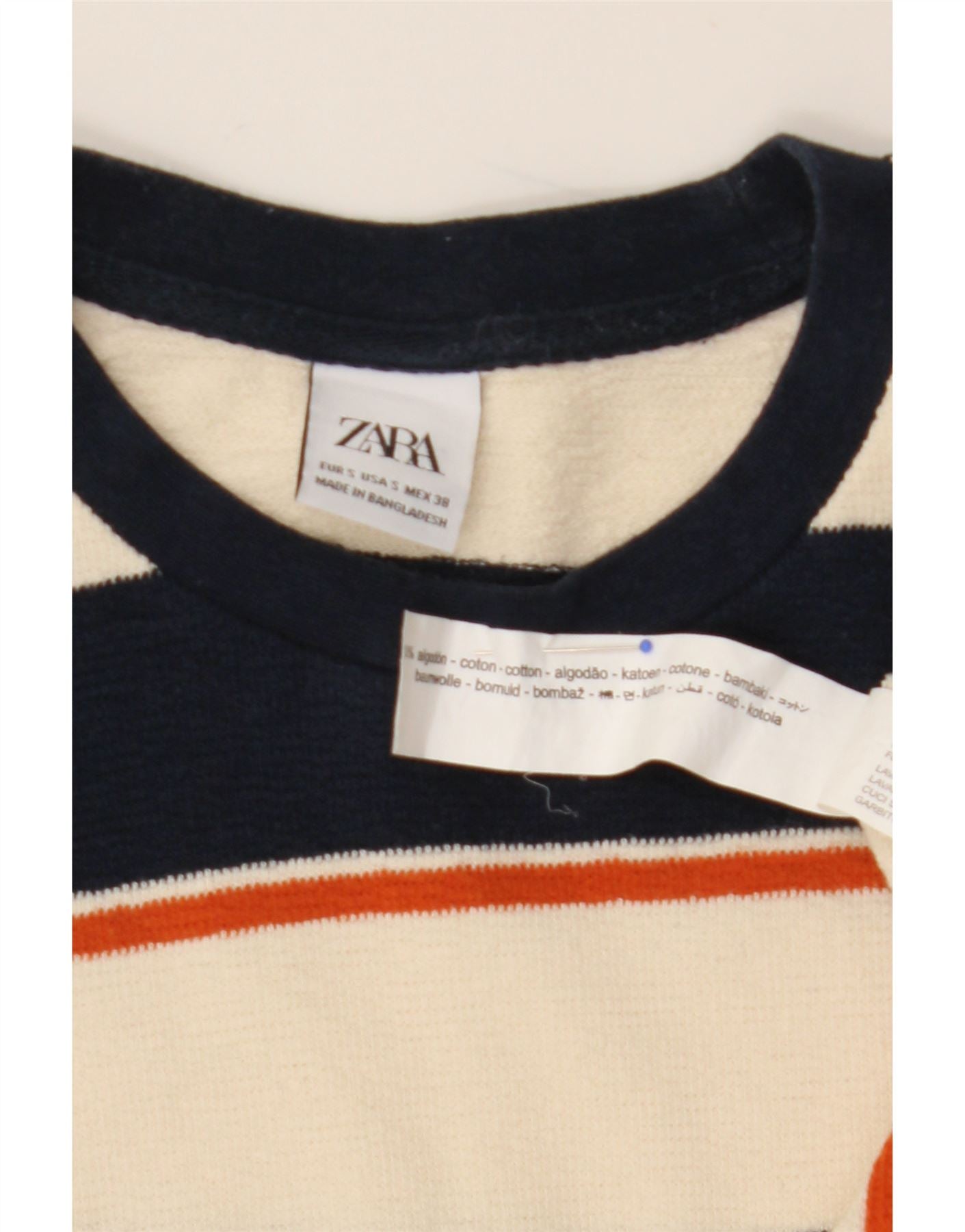 ZARA T-shirt Uomo Top Small in Cotone a Righe Beige